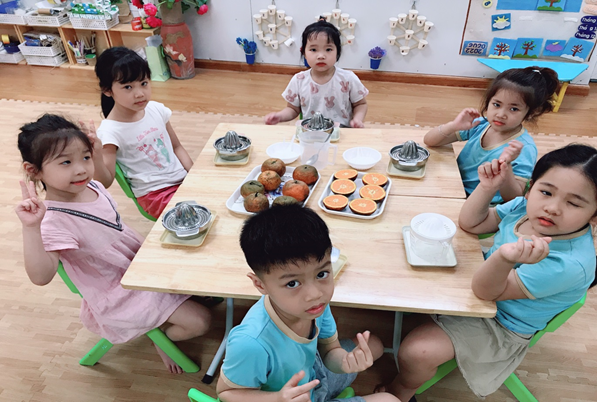 Sau đây là một số hình ảnh của trẻ trong hoạt động vắt nước cam: