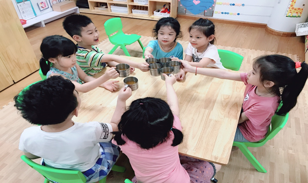 Các bạn khối Mẫu giáo lớn trường Mẫu giáo Số 9 tập vắt nước cam