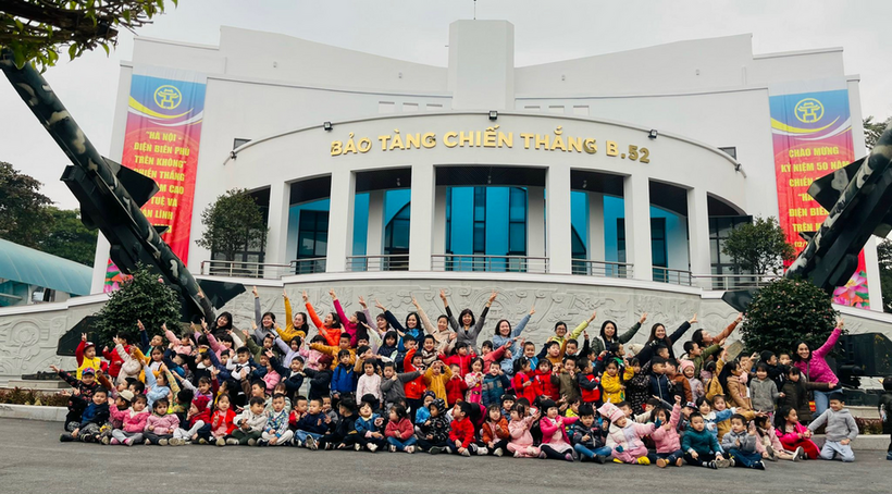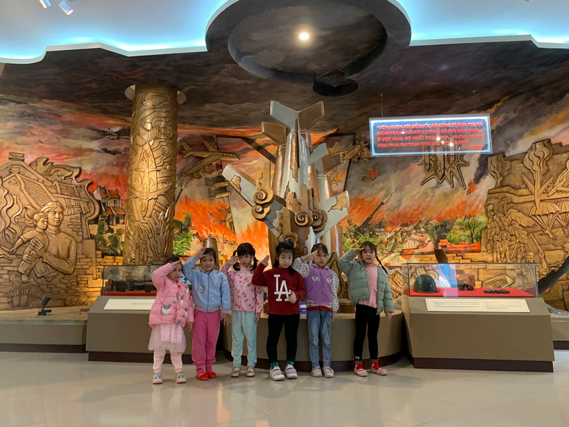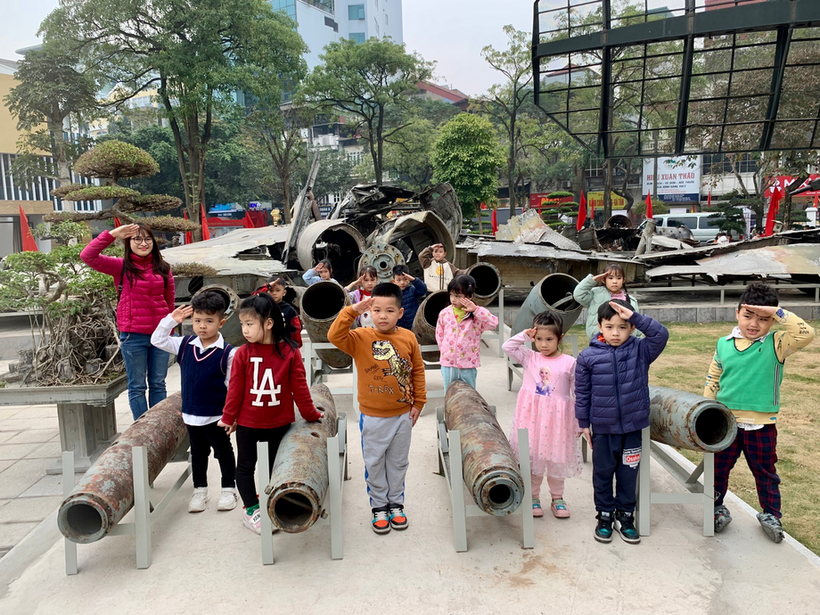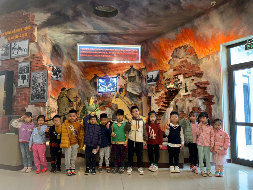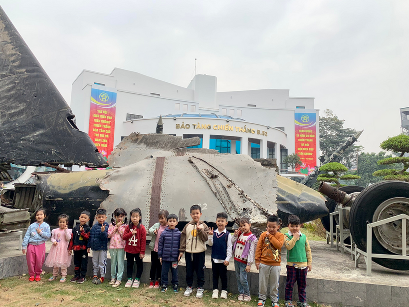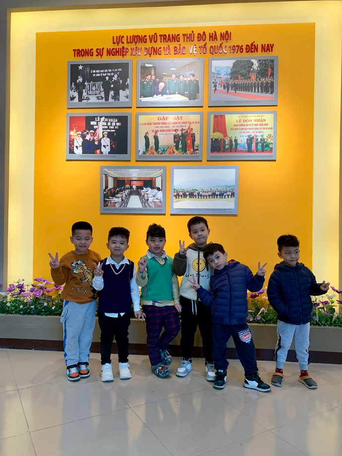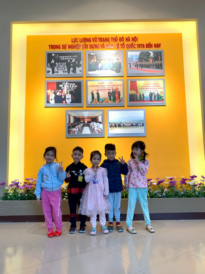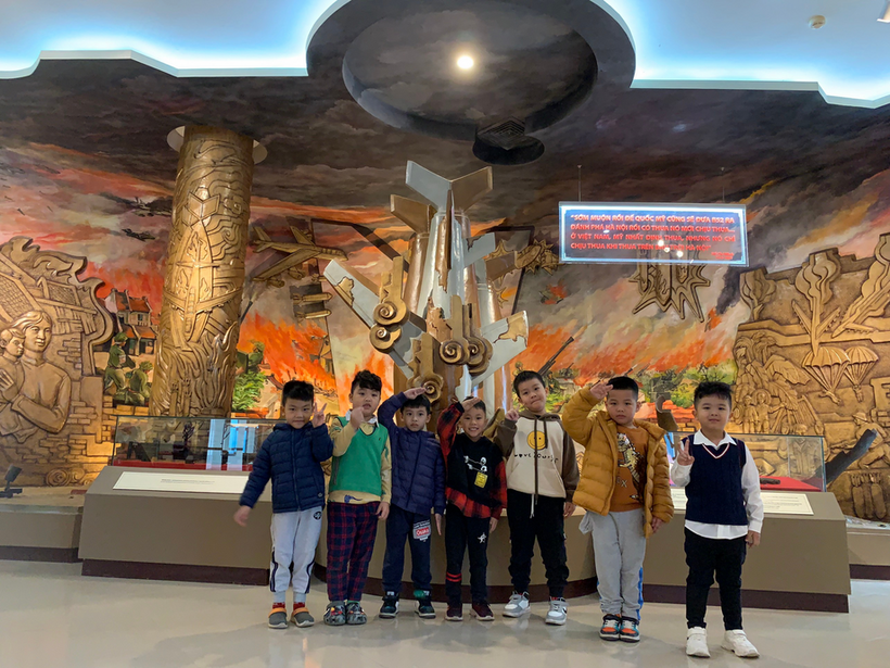 Đến Bảo tàng, các bạn nhỏ lớp MGL A1 được tham quan triển lãm trưng bày hơn 300 hình ảnh, hiện vật và tài liệu theo các chủ đề: Âm mưu của Mỹ; Hà Nội chiến đấu và chiến thắng; Tội ác của Mỹ và sự trừng phạt; Thế giới ủng hộ và ngợi ca chiến thắng; Hà Nội xưa và nay.