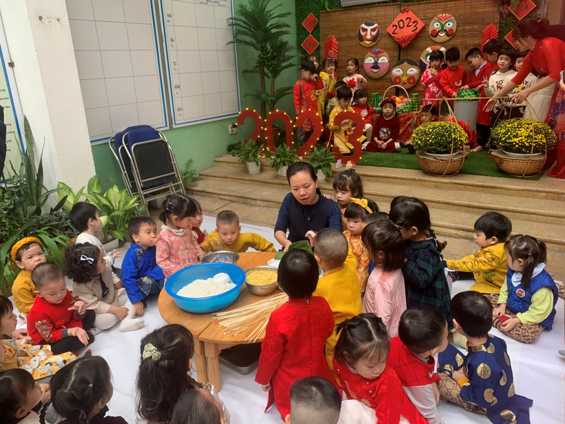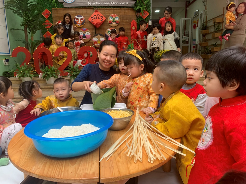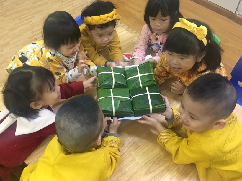 Được tham gia vào hoạt động, các bé tỏ ra rất thích thú và hào hứng khi được ngắm nhìn các cô giáo và các anh chị lớp lớn gói bánh chưng, được học hỏi thêm về phong tục Tết cổ truyền của dân tộc, được biết đến món ăn truyền thống đặc trưng của ngày Tết. Qua đó các con sẽ hiểu thêm về ý nghĩa của những chiếc “Bánh chưng” và ý nghĩa về tình yêu dân tộc, sự gắn kết giữa con người với con người trong ngày Tết, để qua thời gian bản sắc và văn hóa Việt vẫn được gìn giữ và phát huy. Đây cũng là món quà ý nghĩa mà nhà trường dành tặng các bé trước khi đón Tết Quý Mão 2023.