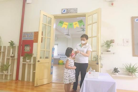 Sự háo hức của các con khi được tới trường, tới lớp gặp lại cô giáo và bạn bè. Trong ngày đầu tiên toàn bộ CBGVNV nhà trường đều trong tinh thần chuẩn bị sẵn sàng chào đón các con. Các giáo viên đứng cửa lớp chào mừng các con tới lớp và đo thân nhiệt cho các con trong buổi sáng tới lớp.