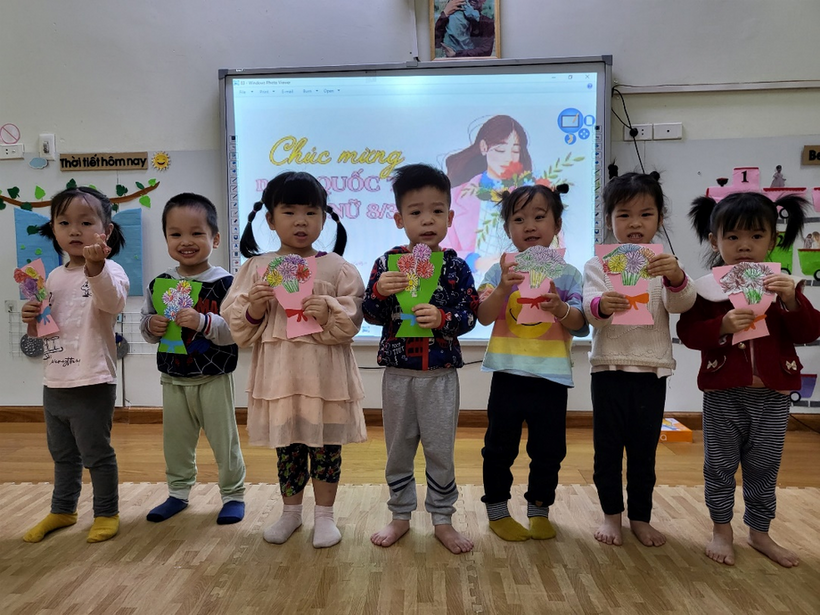 Sau đây là những hình ảnh của các con làm những bó hoa để tặng bà và mẹ nhân ngày 8-3: