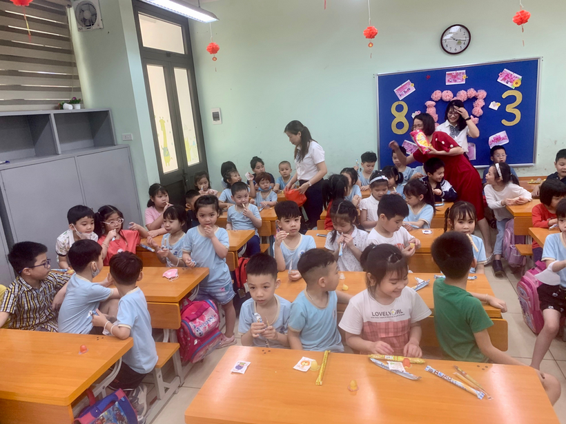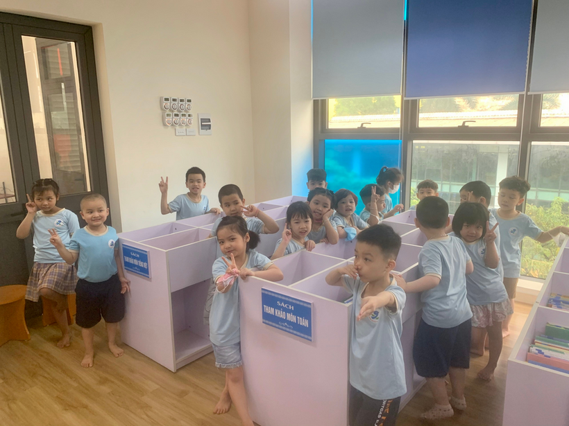 Dù bỡ ngỡ nhưng các con rất tự tin, sự vui vẻ, háo hức và phấn khởi được lộ trên từng khuôn mặt của các bé khi đi tham quan các phòng học, phòng chức năng và được liên hoan cùng các anh chị ở trường Tiểu học.