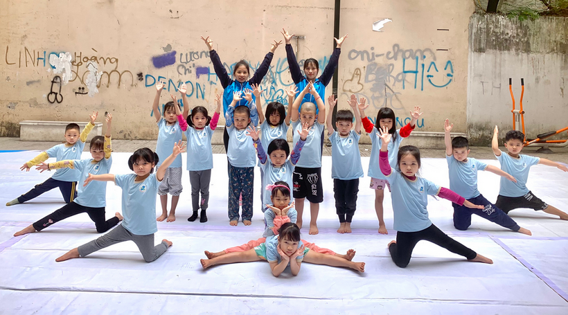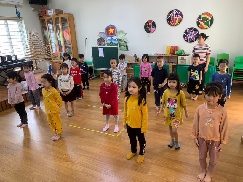 Công tác chuẩn bị cho Hội thi thể dục nhịp điệu của trường Mẫu giáo Số 9 do quận Ba Đình tổ chức