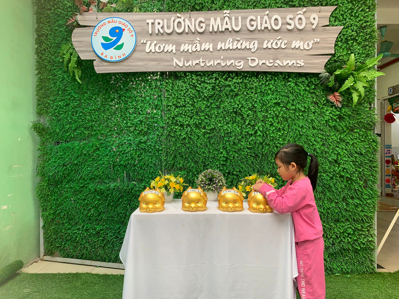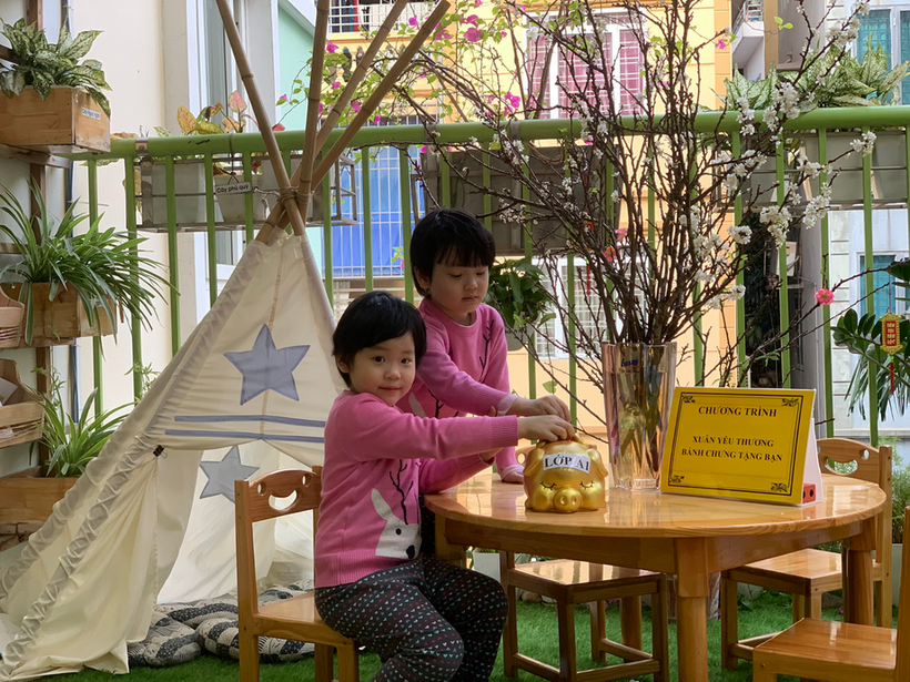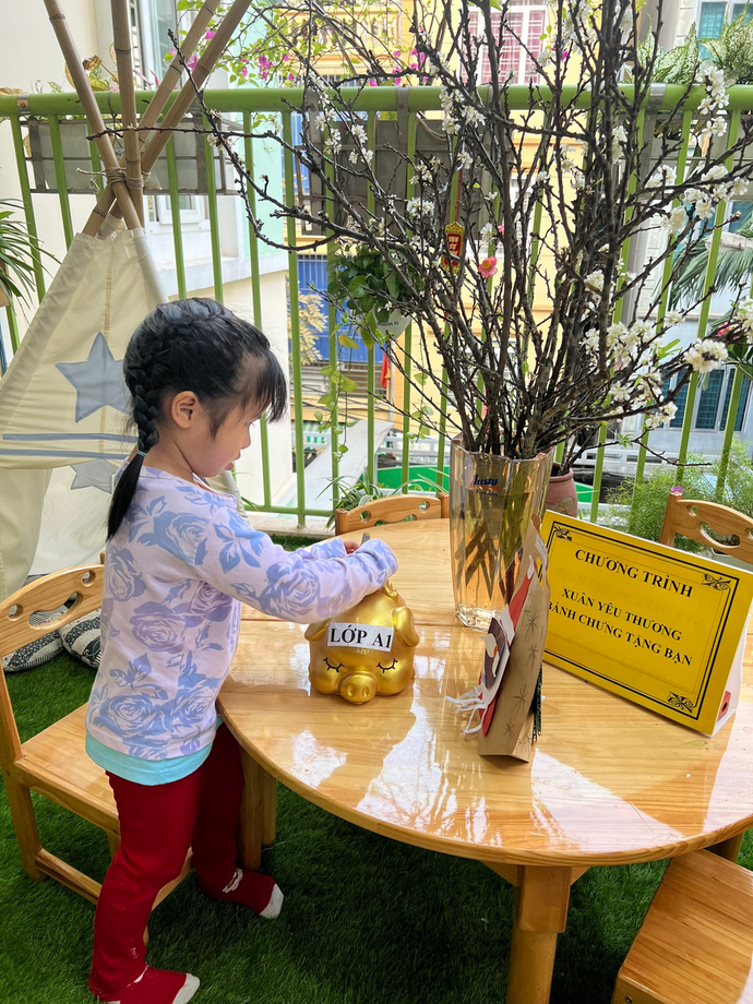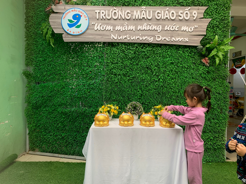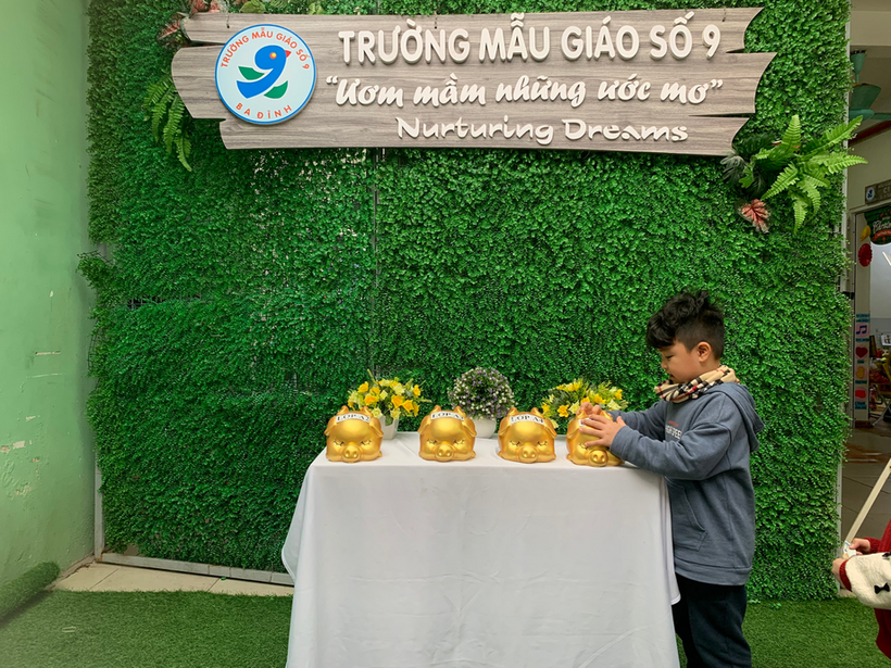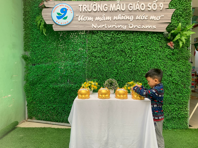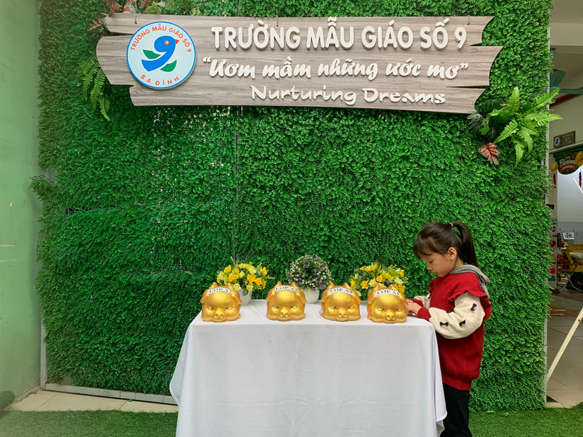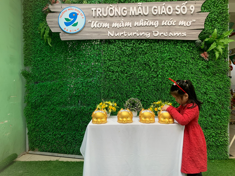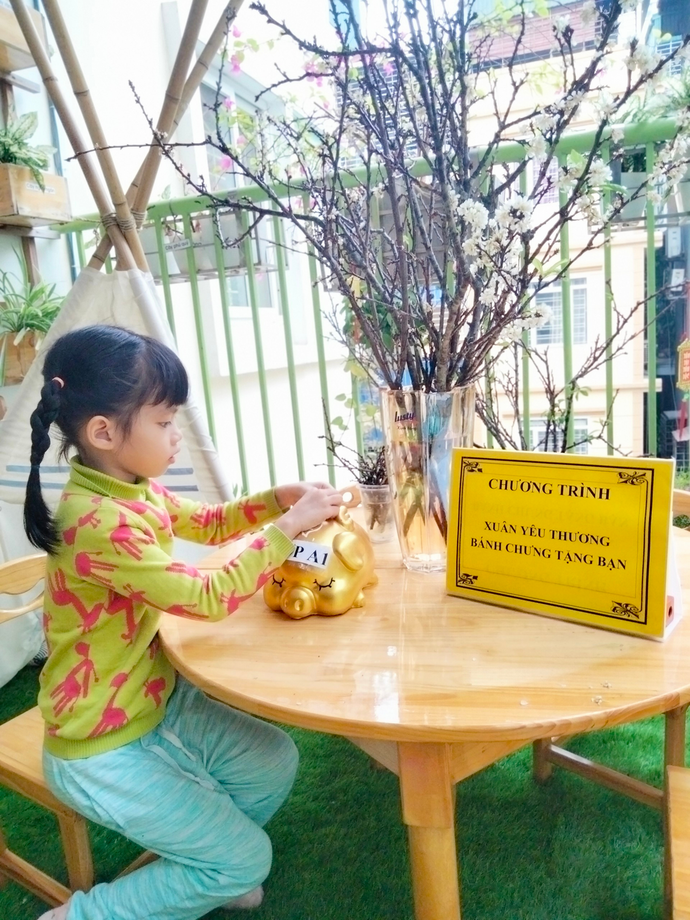 Với tinh thần tương thân tương ái của người dân Việt Nam nói chung, trường Mẫu giáo Số 9 nói riêng, ngay từ những ngày đầu tham gia lễ phát động chương trình “ Xuân yêu thương- Bánh chưng tặng bạn” để chung tay gửi đến các bạn nhỏ gặp hoàn cảnh khó khăn có một cái Tết ấm no, hạnh phúc. Giáo viên lớp cùng các bạn nhỏ lớp MGL A1 đã cùng nhau nuôi lợn đất để gửi những chiếc bánh chưng nho nhỏ và tình yêu thương của các bạn đến những bạn gặp hoàn cảnh khó khăn.