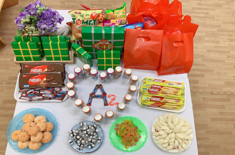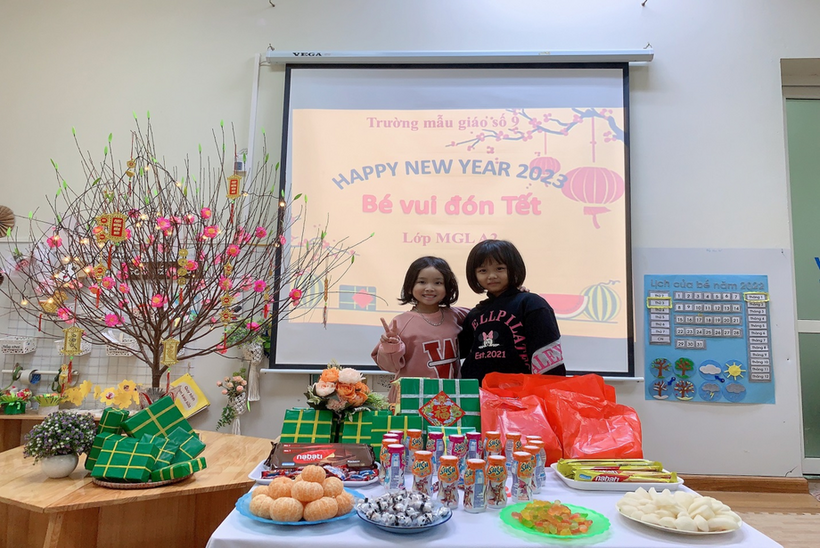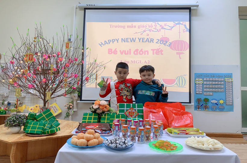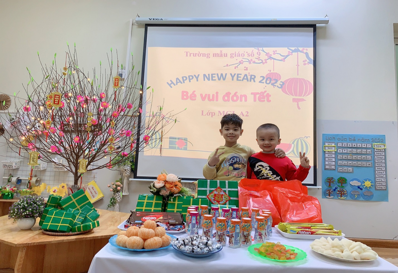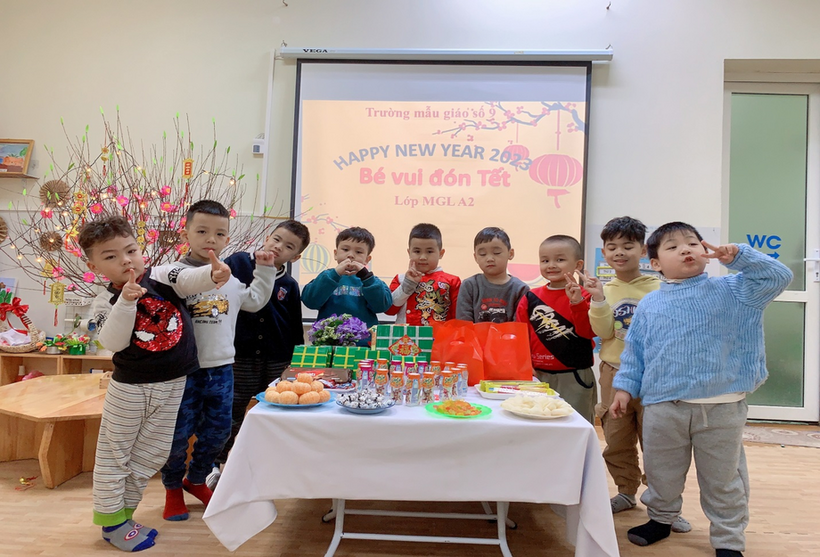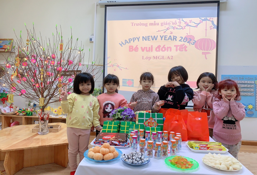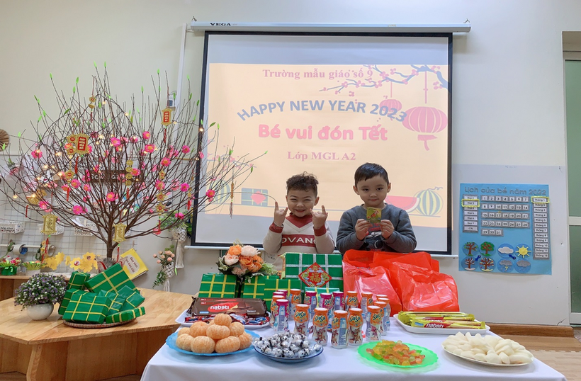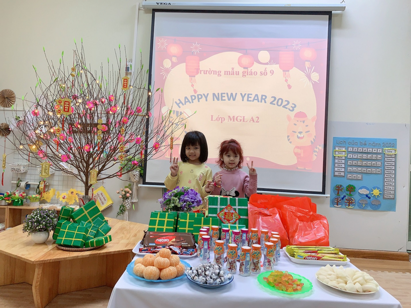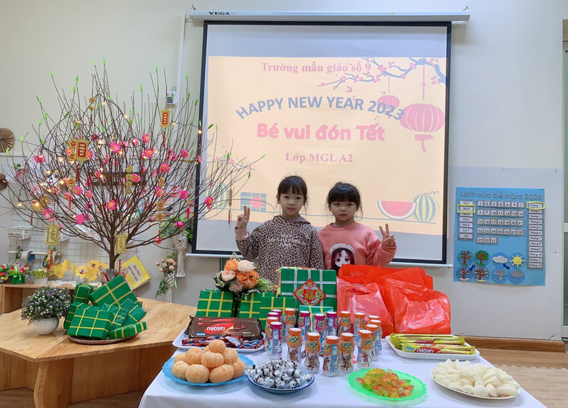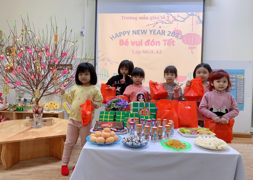 Hòa trong không khí náo nức đón xuân trên khắp mọi miền tổ quốc Việt Nam, các bạn lớp MGL A2 cùng nhau đón Tết sang với nhiều hoạt động khác nhau: trang trí lớp học, trang trí tờ lịch Tết, gói bánh chưng… Ngày tết cổ truyền của dân tộc đang đến gần, được tham gia hoạt động trải nghiệm thực tế, các bạn nhỏ đều tỏ ra rất hào hứng và thích thú, những nét mặt rạng rỡ, phấn khởi bởi được tự tay trang trí chuẩn bị đón tết. Và đặc biệt hơn, vào sáng thứ 3, ngày 17/1/2023, các bạn nhỏ được nhận quà của nhà trường, của Ban phụ huynh lớp và liên hoan chào mừng Tết đến.