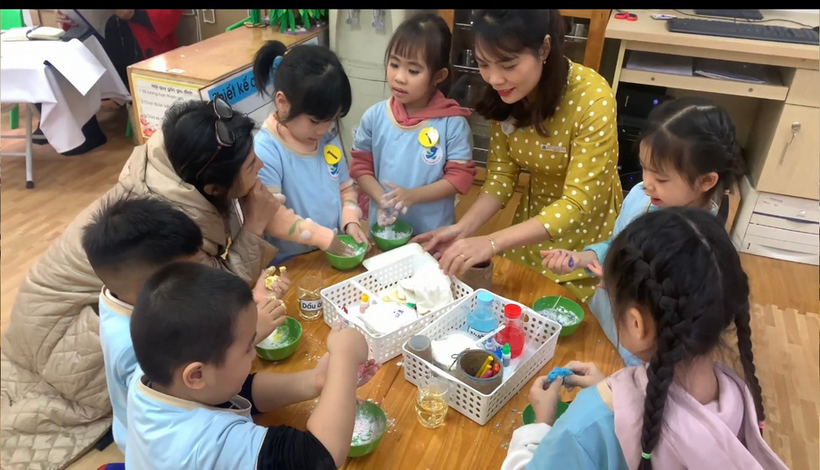 Với phần thực hành cô Thảo thực hành lĩnh vực phát triển nhận thức với đề tài “Cùng bé khám phá cách làm Tò he”. Việc chuẩn bị đầy đủ đồ dùng học liệu, phong thái nhẹ nhàng, tự tin của cô giáo đã giúp trẻ yêu thích khám phá, tự tin, sáng tạo hơn khi tham gia vào hoạt động. Qua giờ học khám phá, trẻ được hóa thân làm những nhà khoa học nhí, được tự mình khám phá, thiết kế, sáng tạo để khám phá cách làm Tò he.