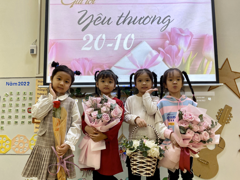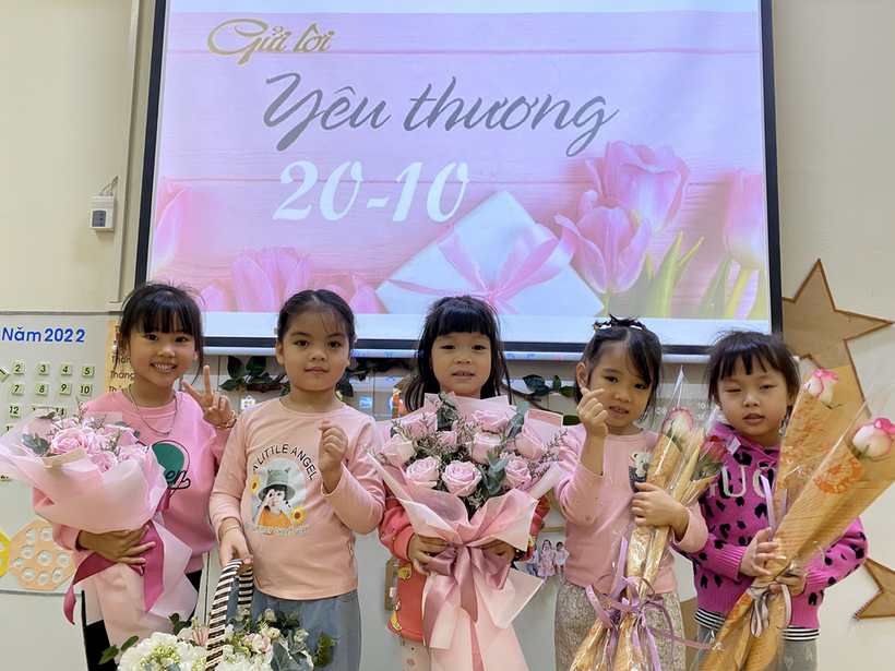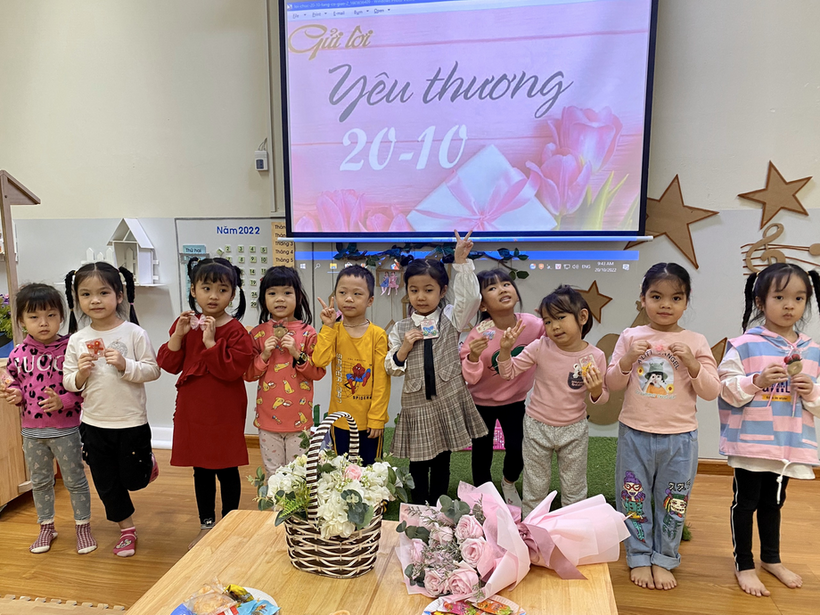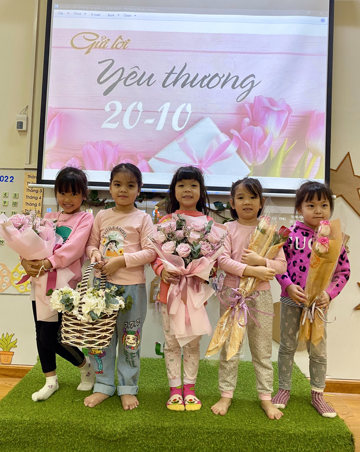 Sau đây là hình ảnh chuỗi các hoạt động chào mừng ngày phụ nữ Việt Nam của các bé lớp mẫu giáo lớn A4 với lời chúc yêu thương nhất dành tặng các Bà, các mẹ, các cô giáo, các chị và các bạn gái