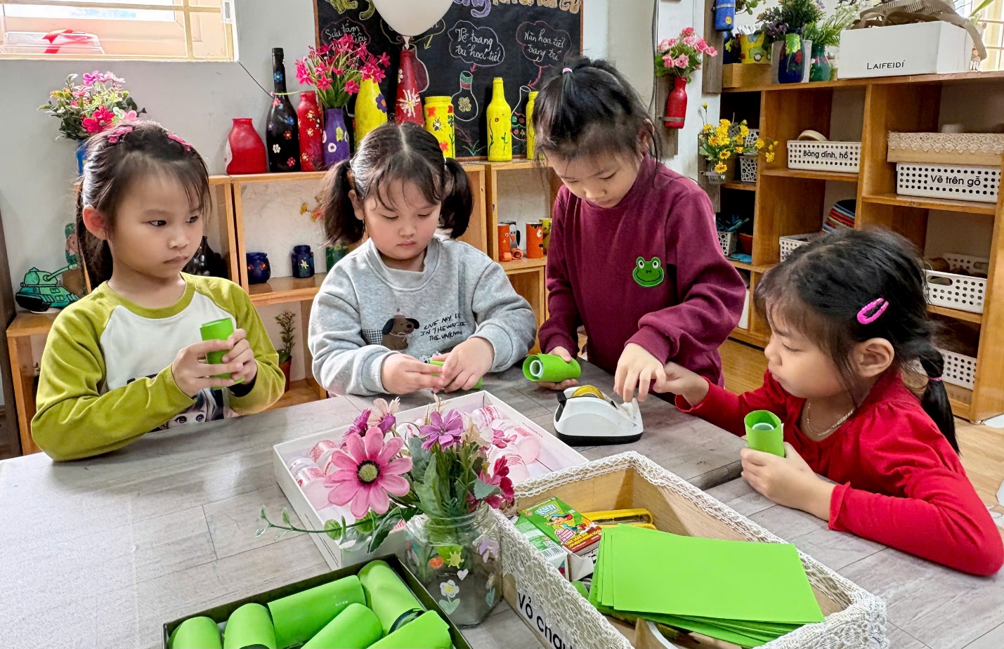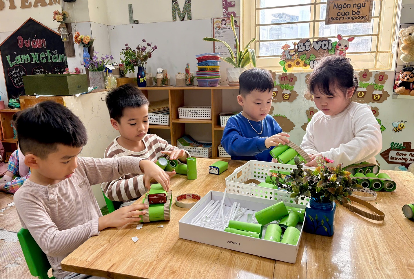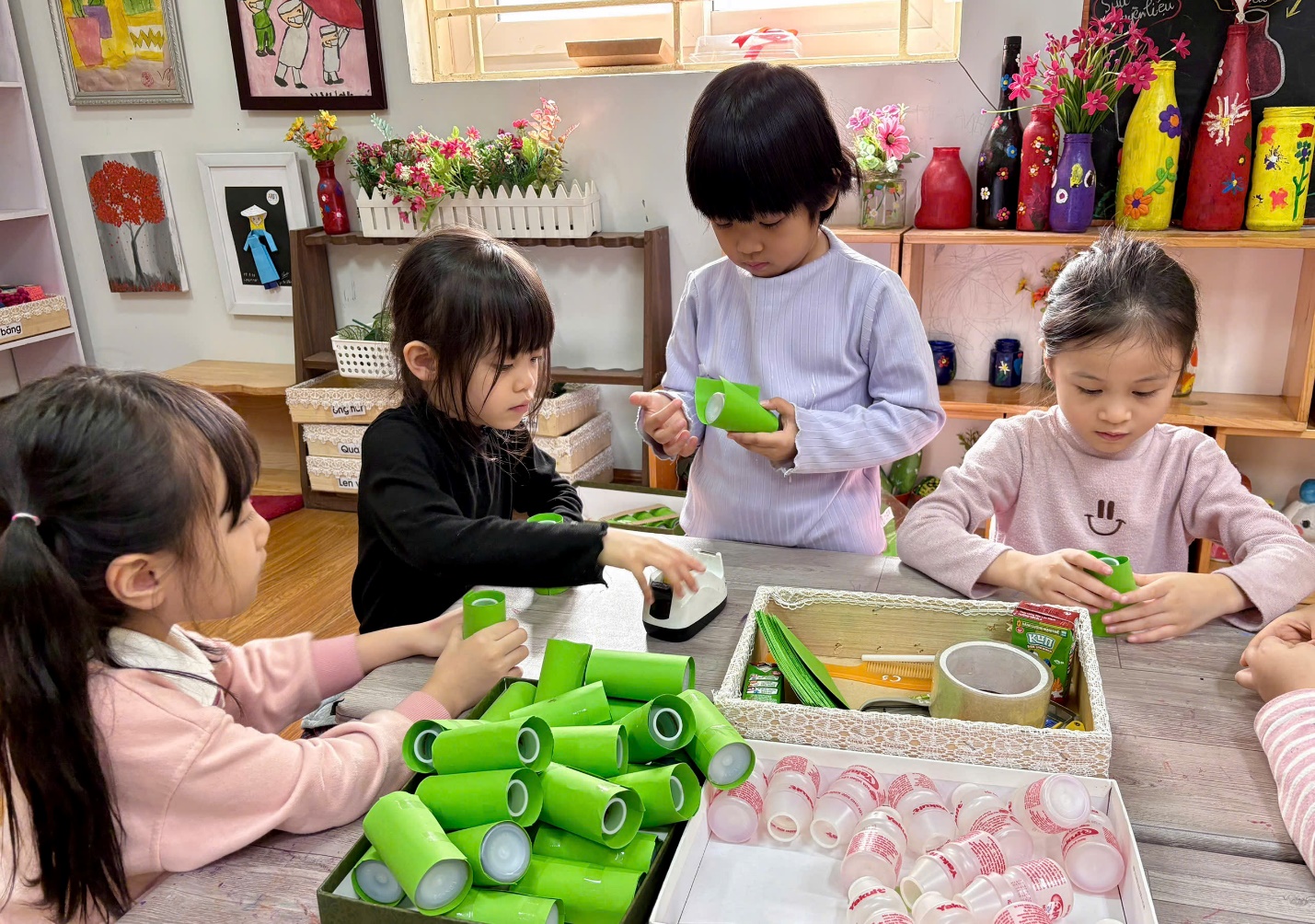 Thông qua hoạt động này, trẻ được: Phát triển tư duy sáng tạo và khả năng quan sát. Rèn luyện kỹ năng làm việc nhóm. Hình thành ý thức bảo vệ môi trường, biết tái sử dụng vật liệu đã qua sử dụng.