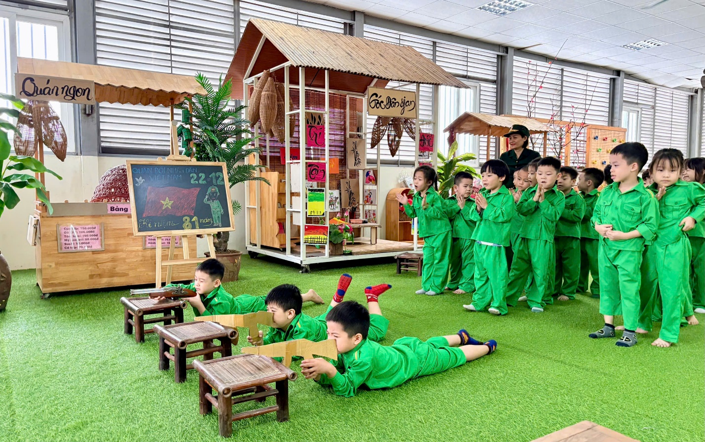 Chuỗi hoạt động chào mừng ngày 22/12 của lớp Mẫu giáo lớn A3 không chỉ mang đến niềm vui học tập, mà còn góp phần: Bồi dưỡng lòng biết ơn và niềm tự hào dân tộc. Giáo dục trẻ yêu hòa bình, yêu quê hương đất nước. Gắn kết giữa cô và trò, giữa học tập và trải nghiệm thực tế.