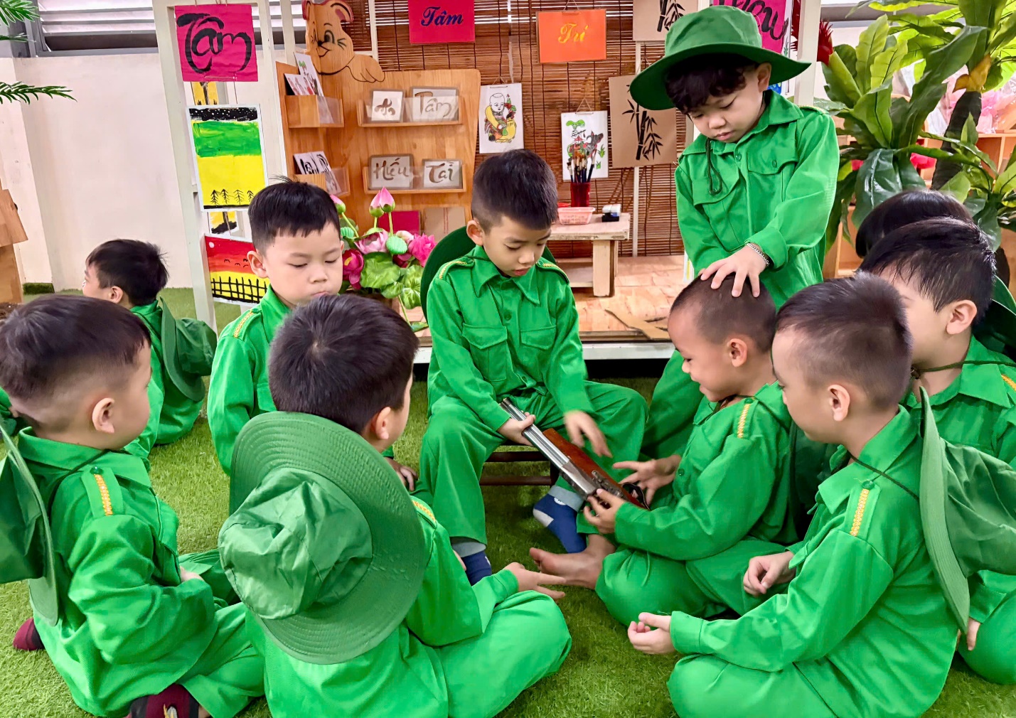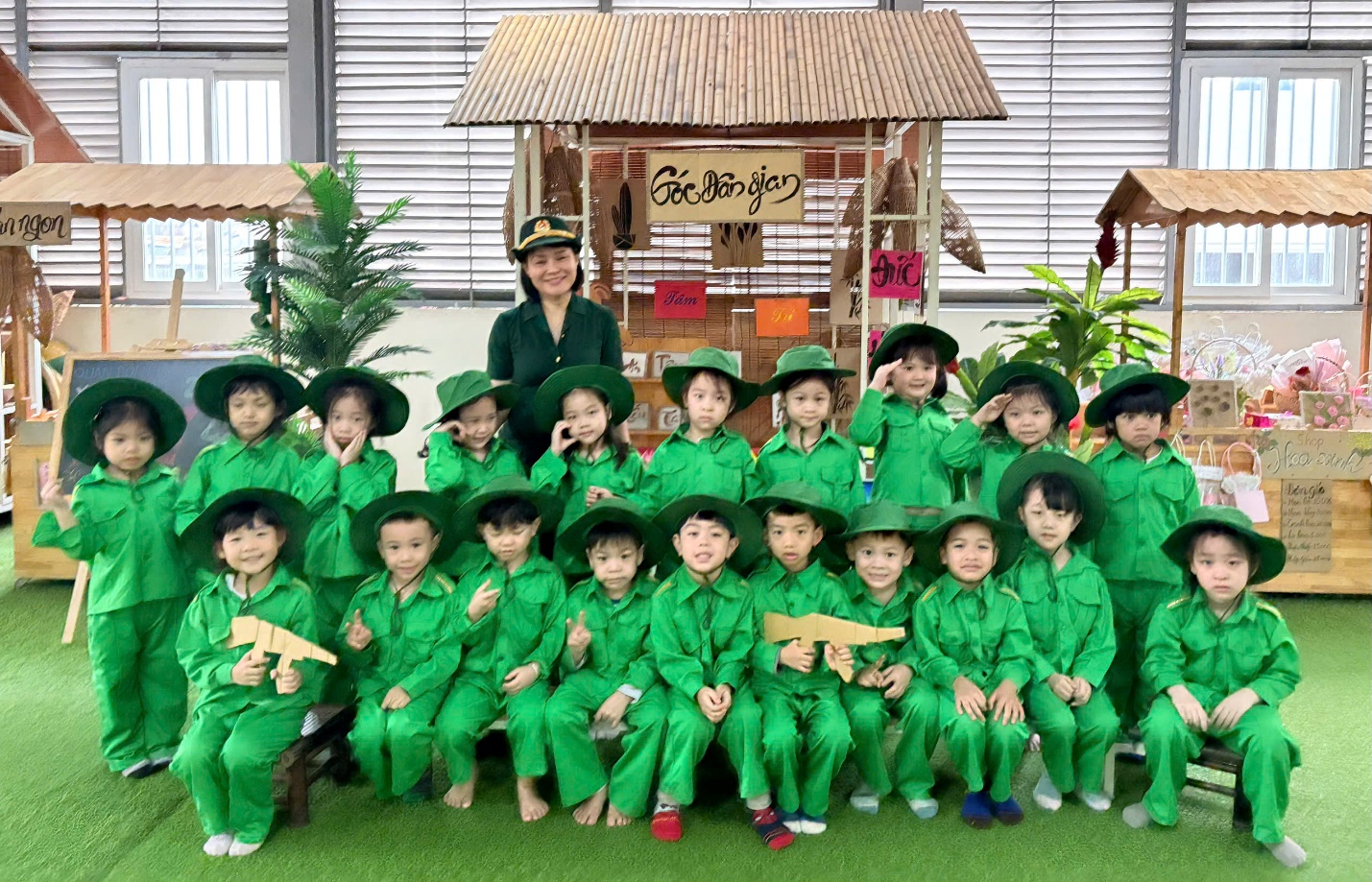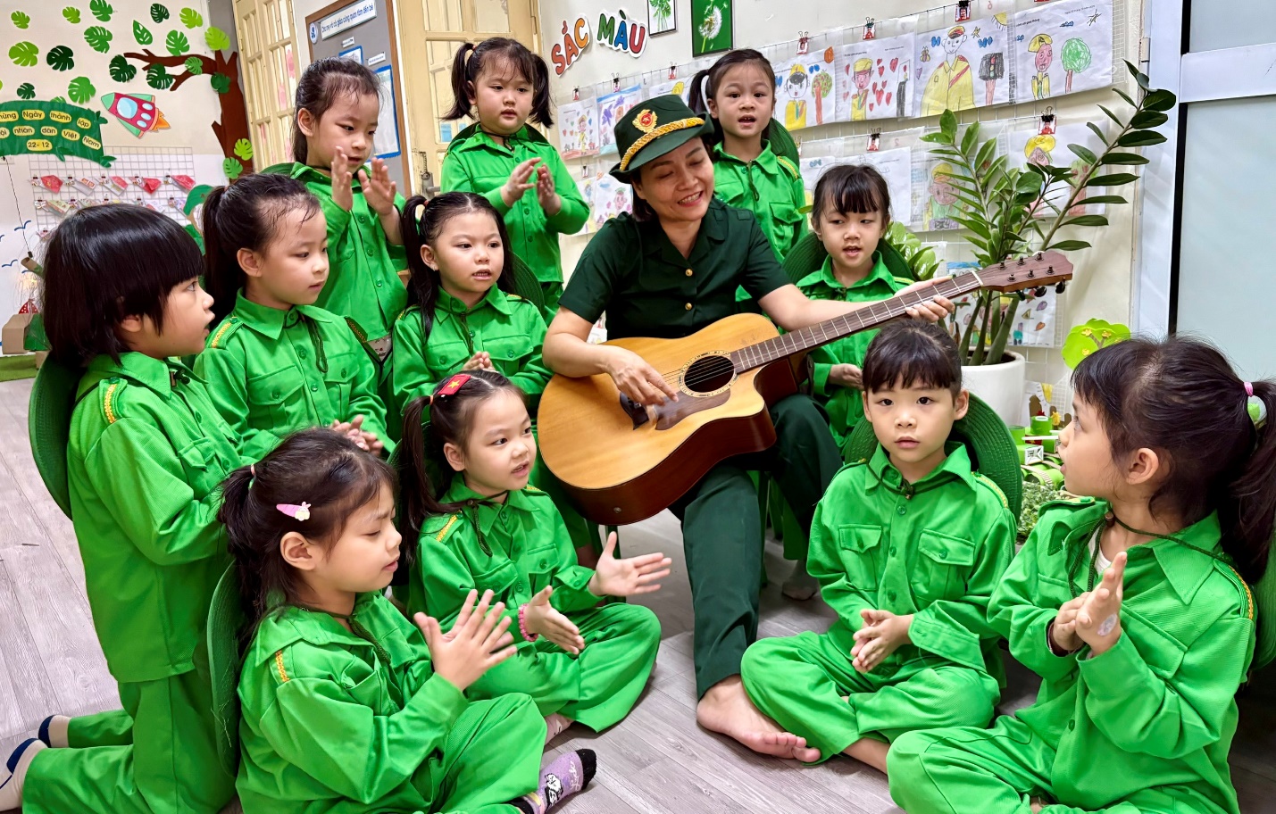 Hoạt động được tổ chức nhằm giúp trẻ tìm hiểu về hình ảnh người lính Cụ Hồ, giáo dục lòng yêu nước, tinh thần đoàn kết, ý thức kỷ luật và phát triển toàn diện các kỹ năng cho trẻ mầm non.