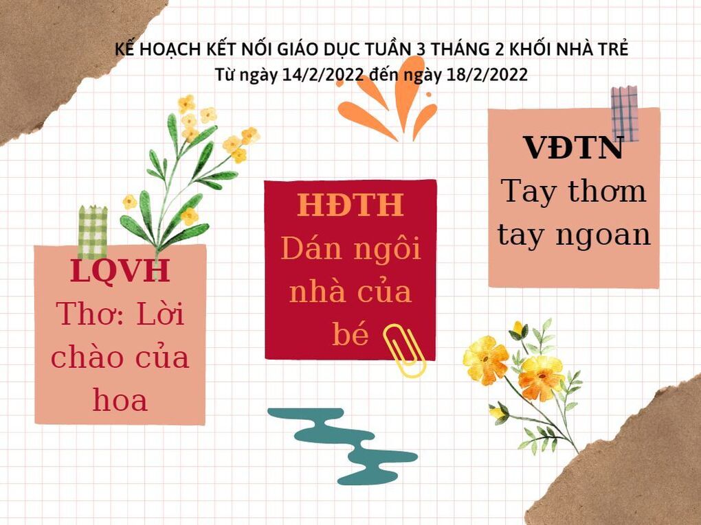 Các con ạ, vậy là chúng mình đã bước sang tuần 3 của tháng 2 rồi đấy. Tuần 3 này có rất nhiều bài học thú vị, đặc biệt dành cho các con đấy. Nào bây giờ mời các quý vị phụ huynh và các con thân yêu trường Mẫu giáo số 9 đến với kế hoạch kết nối tuần 3 tháng 2 năm 2022!
