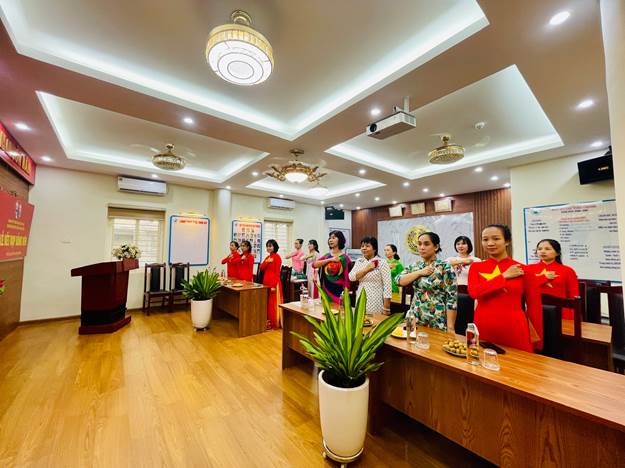 Hình ảnh chào cờ của chi bộ trường Mẫu giáo số 9 trong buổi Lễ kết nạp Đảng