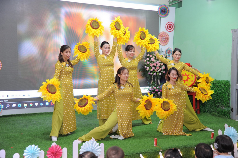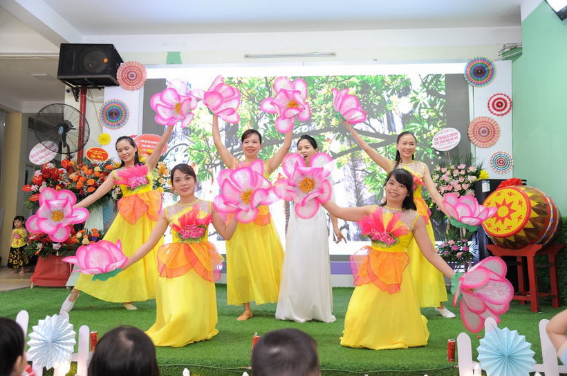 Tiết mục Hà Nội mười hai mùa hoa do các cô giáo của trường biểu diễn
