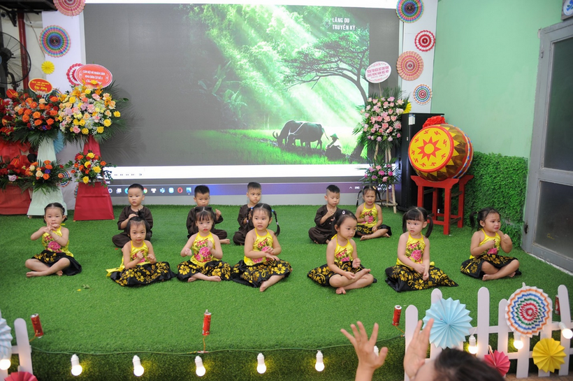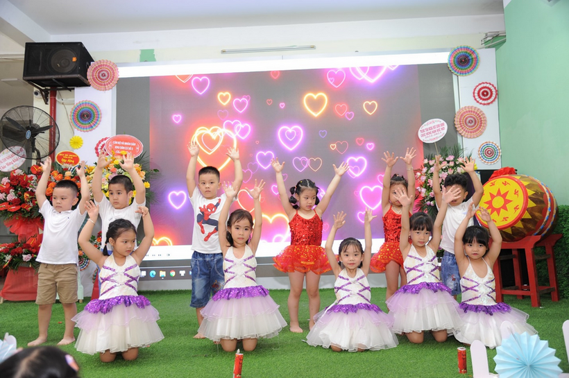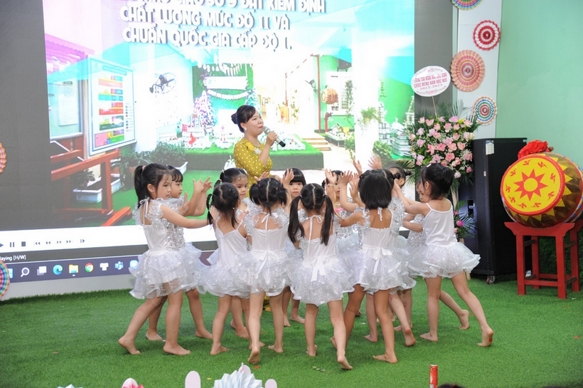 Tiết mục Mầm non hạnh phúc do cô giáo Ngọc Thu và tốp múa lớp MGL A3+4 biểu diễn
