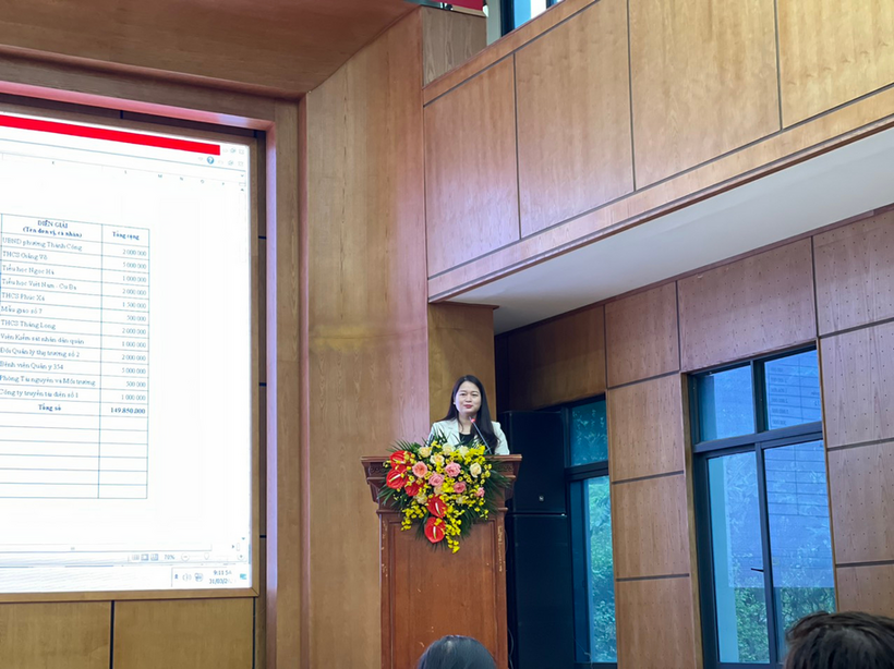 Đ/c Phạm Thị Diễm – Trưởng ban vận động quỹ lên phát biểu