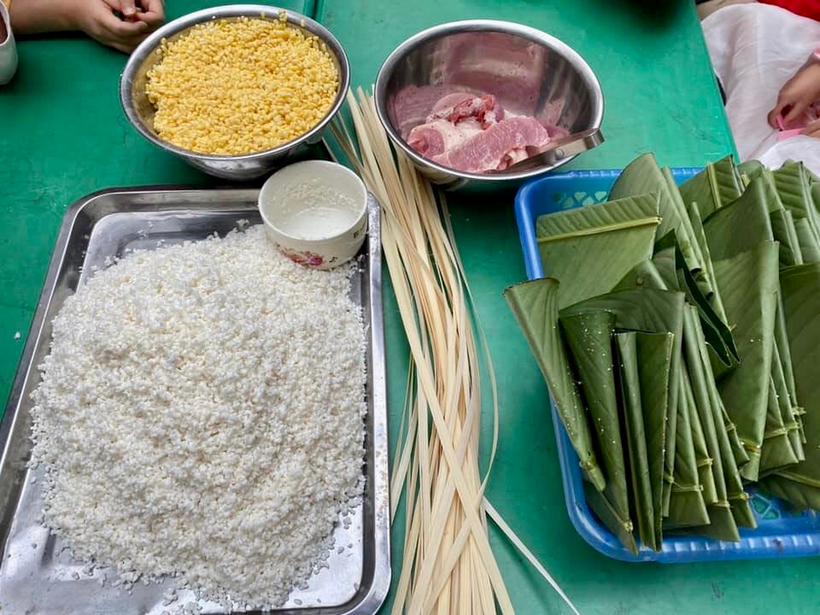 Các nguyên liệu đã được chuẩn bị để làm bánh chưng