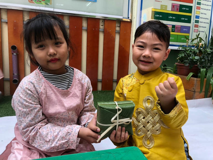 Sau khi được các cô hướng dẫn xong, bé nào cũng được tự tay mình cho những nguyên liệu vào để gói bánh chưng. Các bé tỏ ra rất thích thú và hào hứng khi được học hỏi thêm về phong tục Tết cổ truyền của dân tộc, tự tay làm một món ăn truyền thống đặc trưng của ngày Tết. Một số bạn nhỏ rất khéo tay tạo ra những sản phẩm đầu tay của mình. Qua đó các con sẽ hiểu thêm về ý nghĩa của những chiếc “Bánh chưng” và ý nghĩa về tình yêu dân tộc, sự gắn kết giữa con người với con người trong ngày Tết cổ truyền dân tộc. Đây cũng là món quà trải nghiệm thật ý nghĩa mà các cô dành tặng các con trước khi đón Tết Quý Mão 2023.