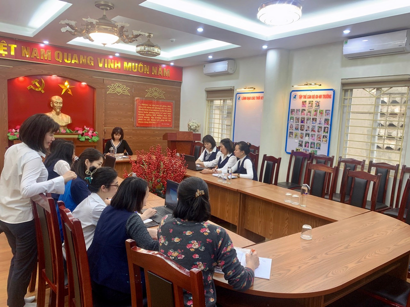 Tham dự buổi tập huấn có đ/c Hoàng Thị Minh Thu - Hiệu trưởng nhà trường và đại diện giáo viên các nhóm lớp với sự hướng dẫn của đ/c Nguyễn Thị Thanh Huyền - Phó hiệu trưởng nhà trường.