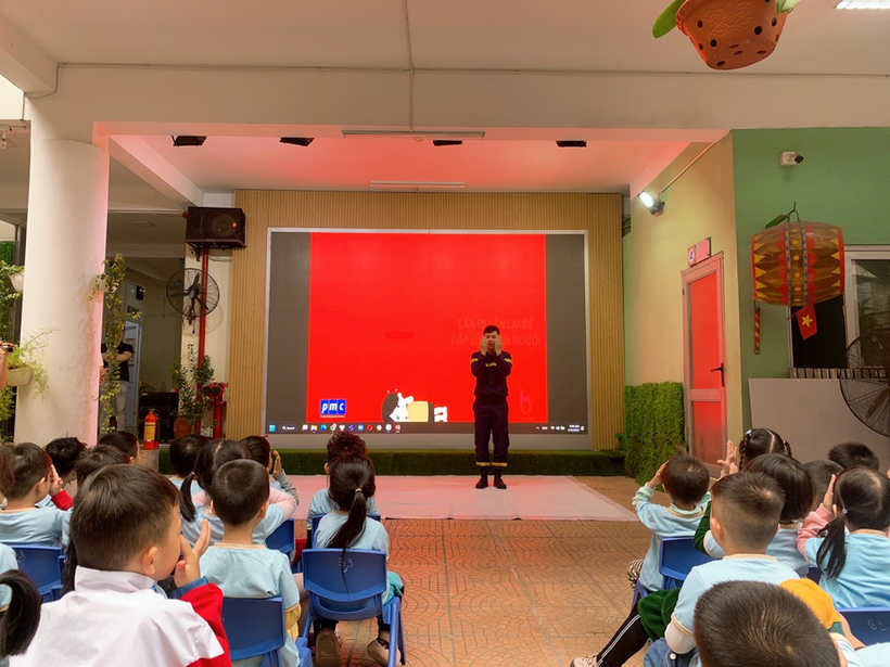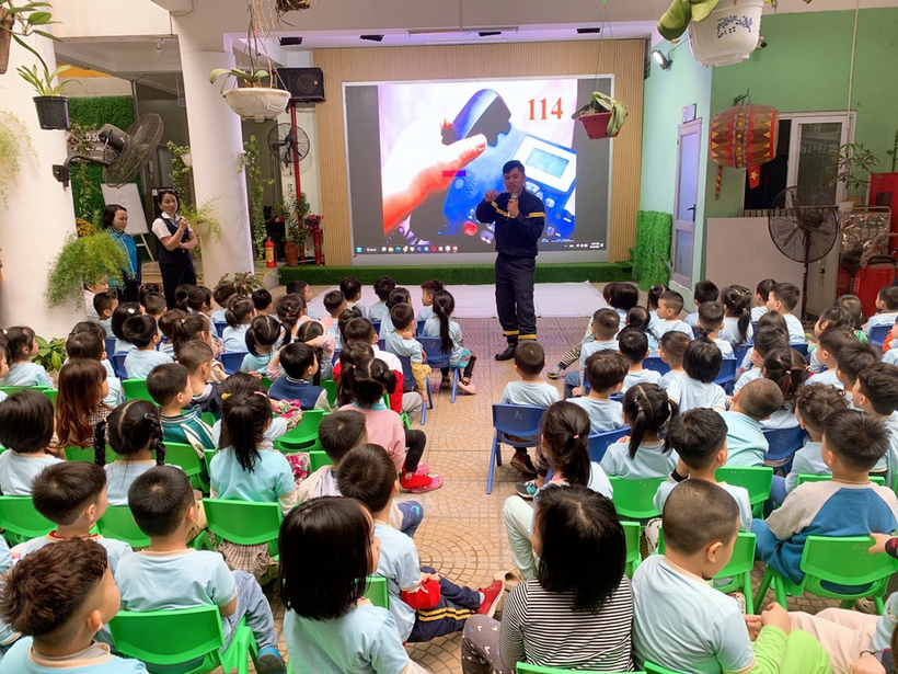Tại buổi tập huấn, giảng viên Nguyễn Thế Long - Cán bộ phòng tuyên truyền của Đội PCCC quân Ba Đình truyền đạt kiến thức, kỹ năng PCCC tại cơ sở giáo dục Mầm non; trao đổi, giao lưu bằng các câu hỏi và đoạn video về cách thoát hiểm; một số nguyên nhân có thể gây cháy tại trường học, cách sử dụng điện trong trường học và nhà ở; một số kỹ năng thoát khỏi đám cháy.