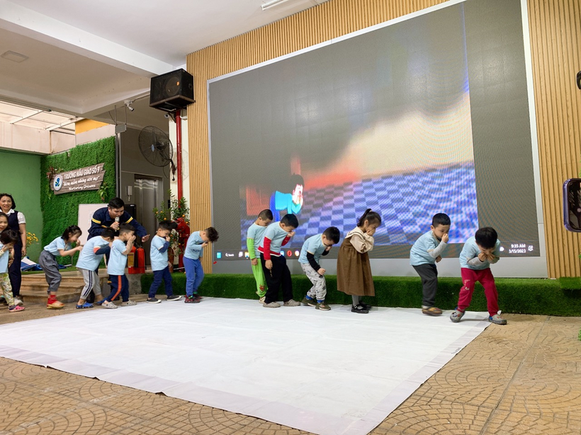 Các con học sinh tập trung ngồi chú ý lắng nghe