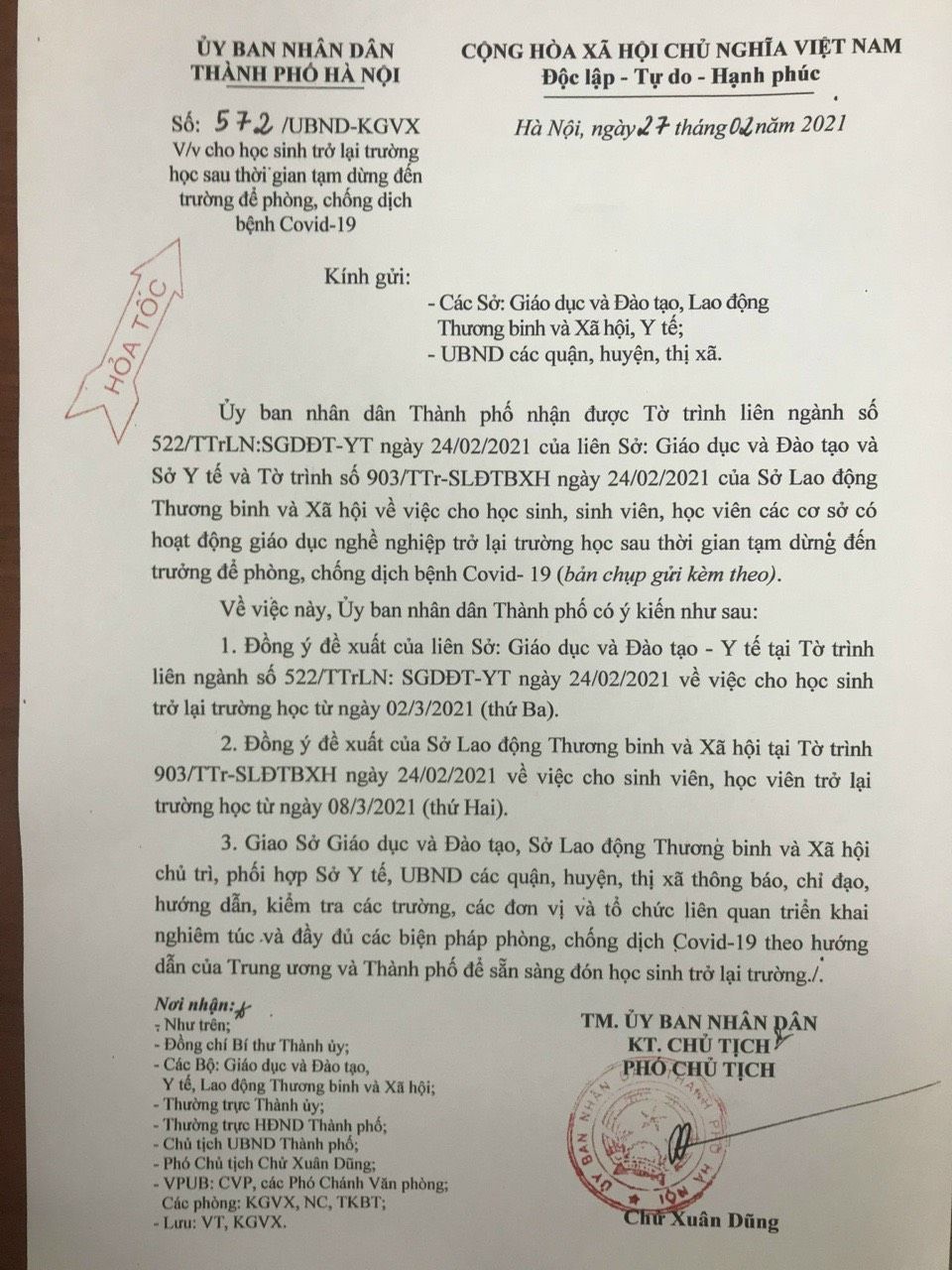 - Trước khi học sinh đi học trở lại, nhà trường sẽ tổng vệ sinh, khử khuẩn theo đúng hướng dẫn của công tác phòng chống dịch.