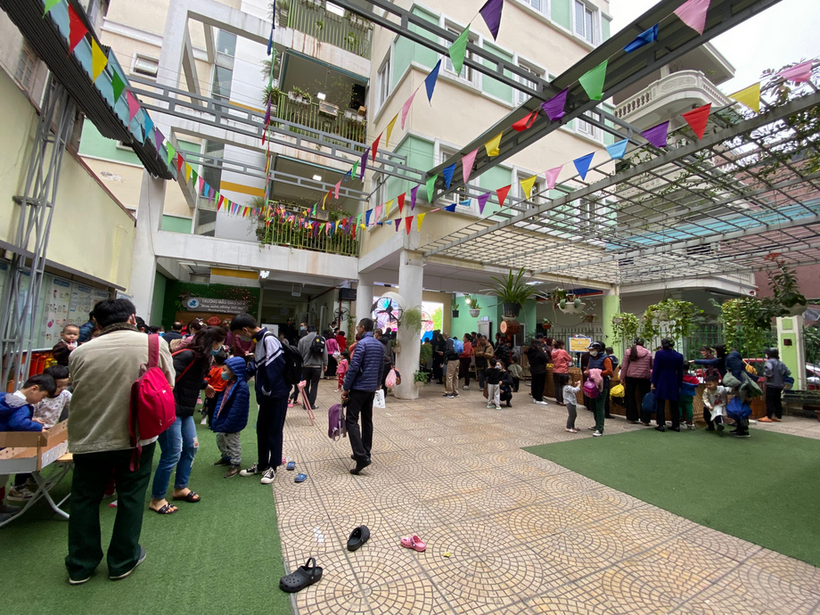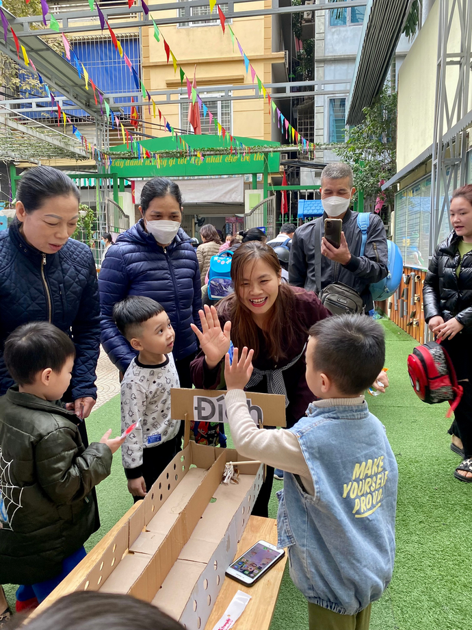 Ngay từ 15h45, khuôn viên trường mẫu giáo số 9 đã đông vui náo nhiệt, bạn nào cũng muốn thật nhanh chân ra tham gia chơi các trò chơi cùng bố mẹ.