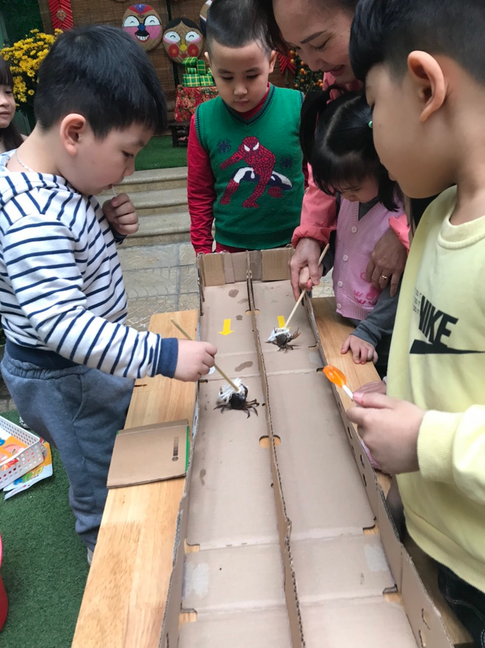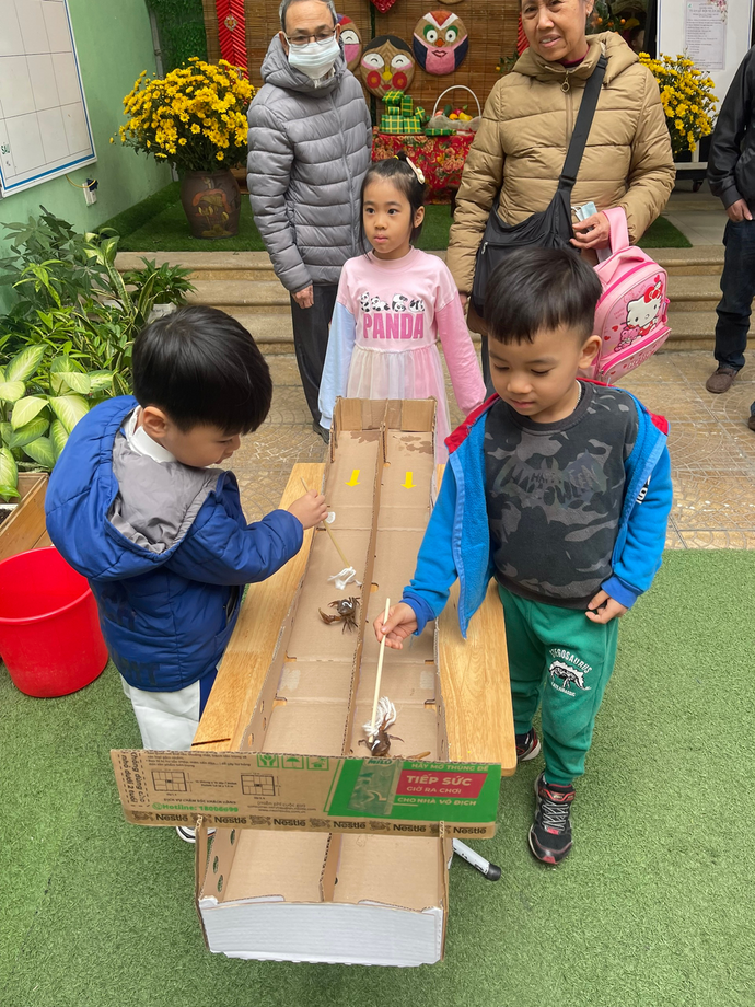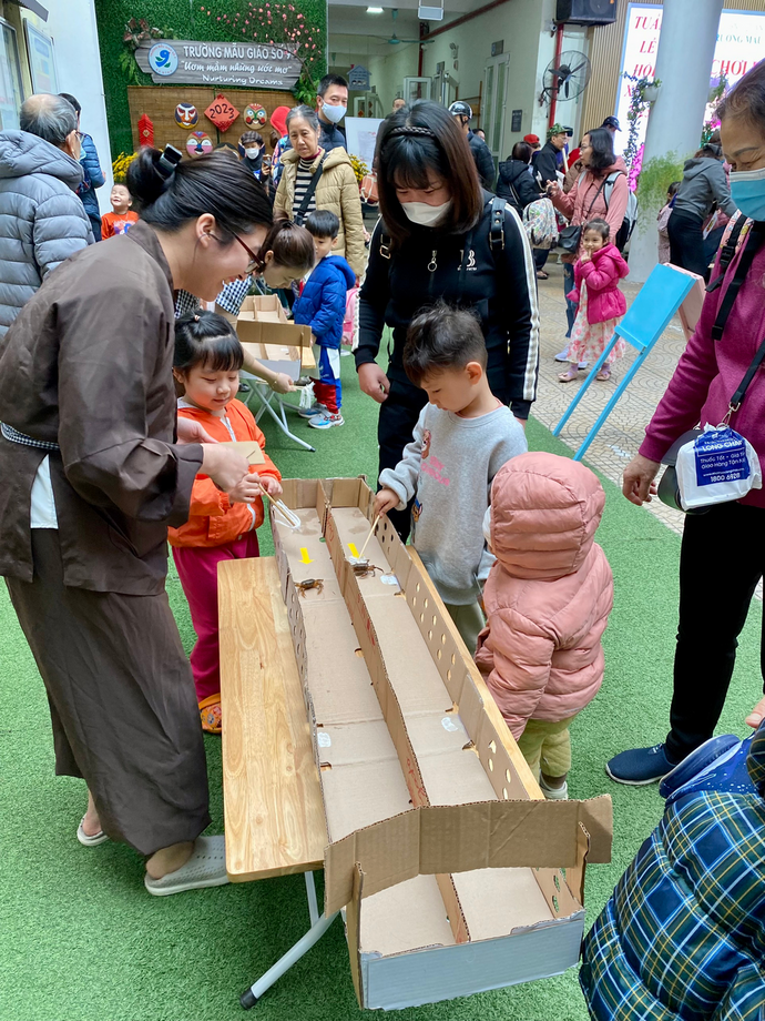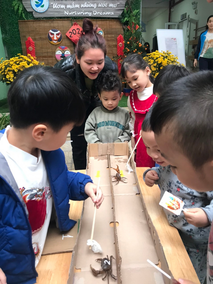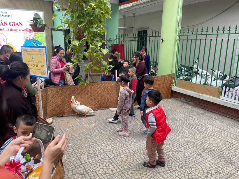 Trò chơi dân gian Đua cua, Bắt vịt với những chú cua nhỏ thi nhau chạy trên đường đua công thức 1- trường Mẫu giáo Số 9, hay những chú vịt nhỏ nhanh nhẹn kèm theo tiếng hò reo, cổ vũ làm cho không khí của Tuần lễ Hội Xuân thêm phần náo nhiệt, rộn ràng..