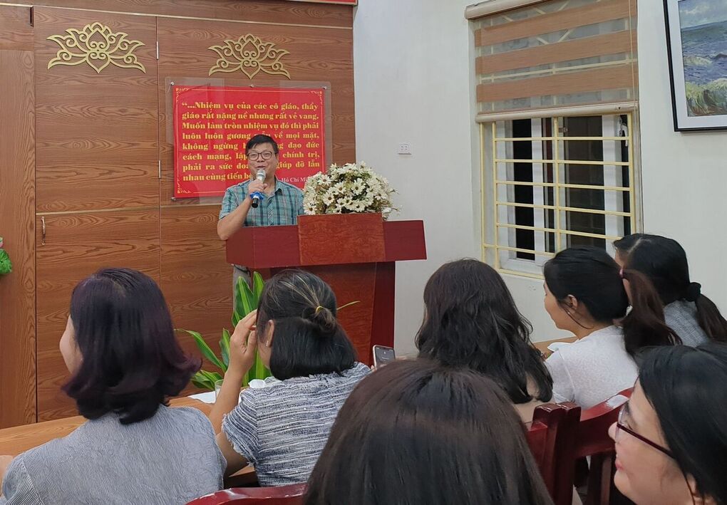 Để thực hiện tốt chủ đề chính của năm học 2020-2021, BGH nhà trường đã mời giảng viên là Th.s tâm lý học Đinh Đoàn – (chuyên gia tâm lý của Đài tiếng nói Việt Nam) đến giảng bài về “Xây dựng trường, lớp mầm non hạnh phúc” cho toàn thể giáo viên, nhân viên trong các nhà trường.