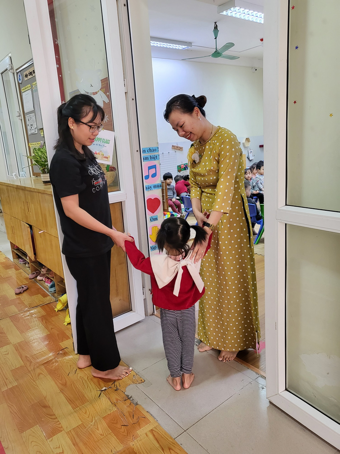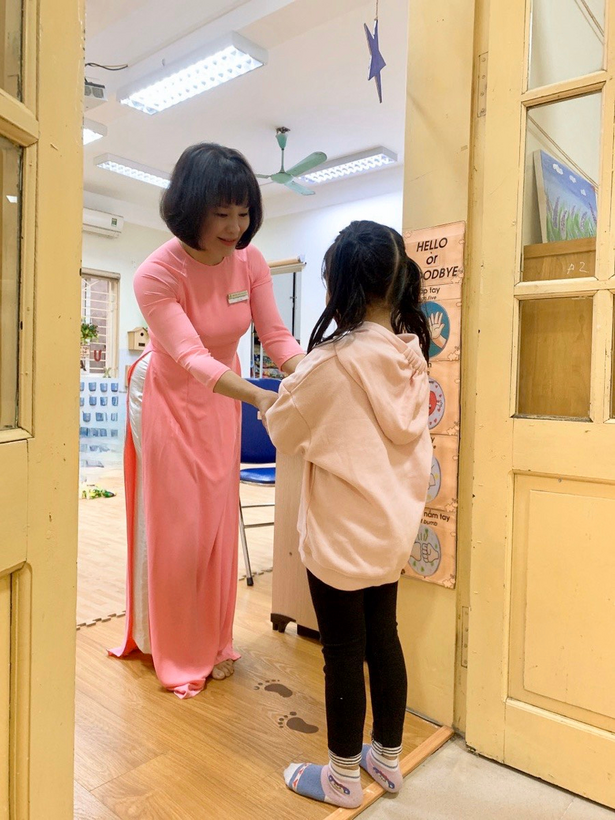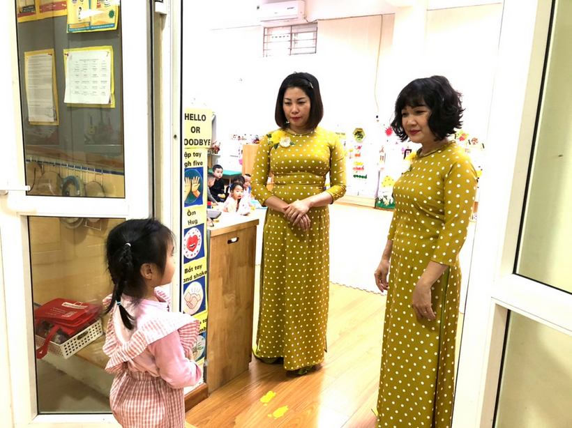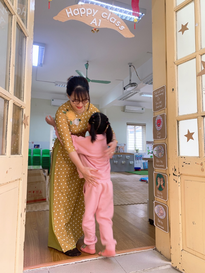 Và dưới đây là một số hình ảnh của các cô giáo trường Mẫu giáo Số 9 trong tà áo dài duyên dáng vào sáng ngày 06/3/2023: