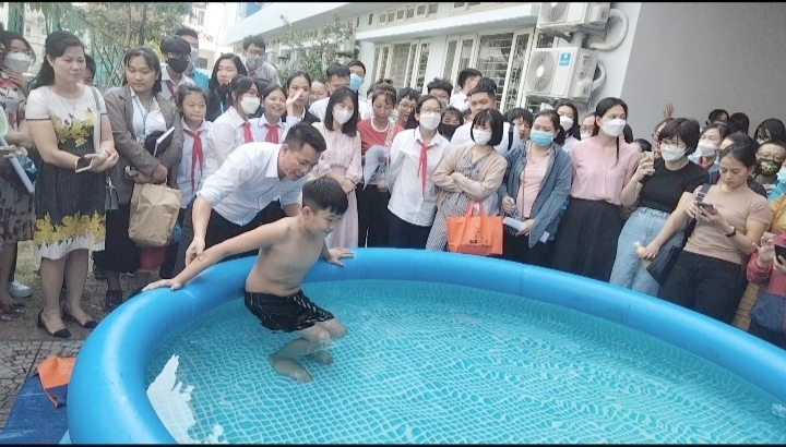 Giảng viên hướng dẫn kỹ năng nổi trên mặt nước.