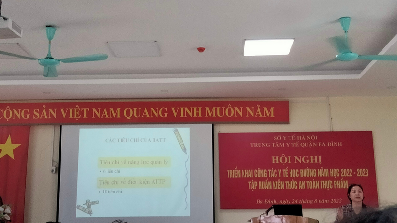 Bài giảng của đ/c Lê Thị Hằng – trưởng phòng chuyên môn chi cục ATTP giúp các trường học trên địa bàn quận Ba Đình được trao đổi, củng cố và hiểu biết thêm về vấn đề ATTP trong trường học, cách xử trí ngộ độc thức ăn cũng như hồ sơ thủ tục pháp lý đầy đủ về chọn nhà cung cấp thực phẩm cho cơ sở trường mình...
