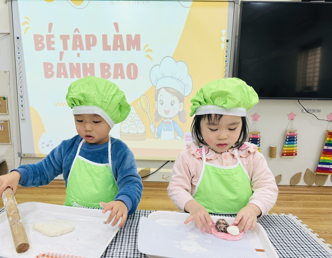 Nhằm tạo cơ hội cho trẻ được trải nghiệm thực tế, phát triển kỹ năng sống ngay từ những năm đầu đời, lớp nhà trẻ đã tổ chức hoạt động nội trợ “Bé tập làm bánh bao” trong không khí vui tươi, ấm áp và đầy hứng khởi.