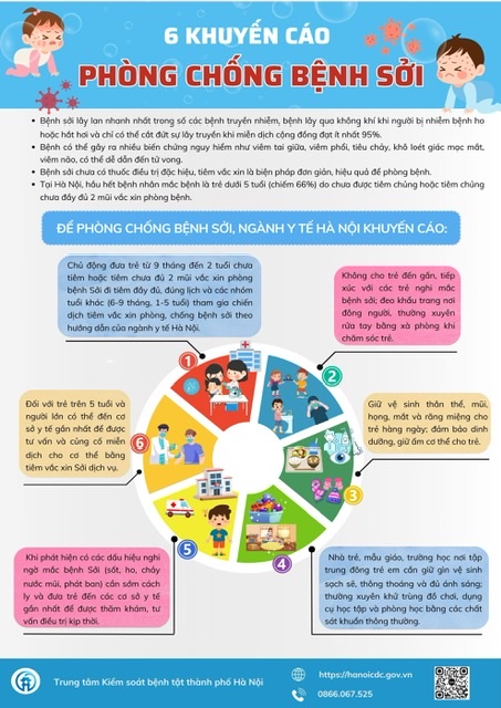 Bệnh sởi là một bệnh truyền nhiễm nguy hiểm gây ra bởi virus sởi và lây truyền qua đường hô hấp. Đưa trẻ đi tiêm phòng đúng độ tuổi, rửa tay bằng xà phòng trước khi tiếp xúc với trẻ, tránh tiếp xúc với người mắc bệnh/nghi mắc bệnh là những cách phòng chống bệnh sởi hữu hiệu.