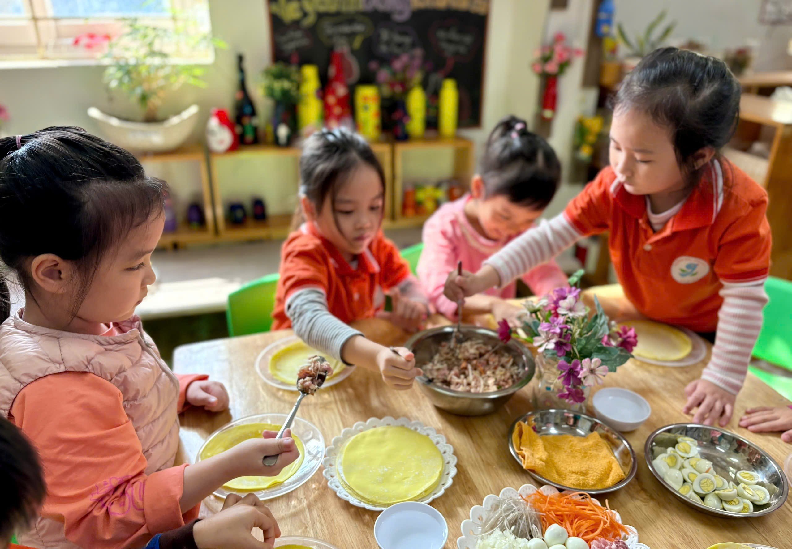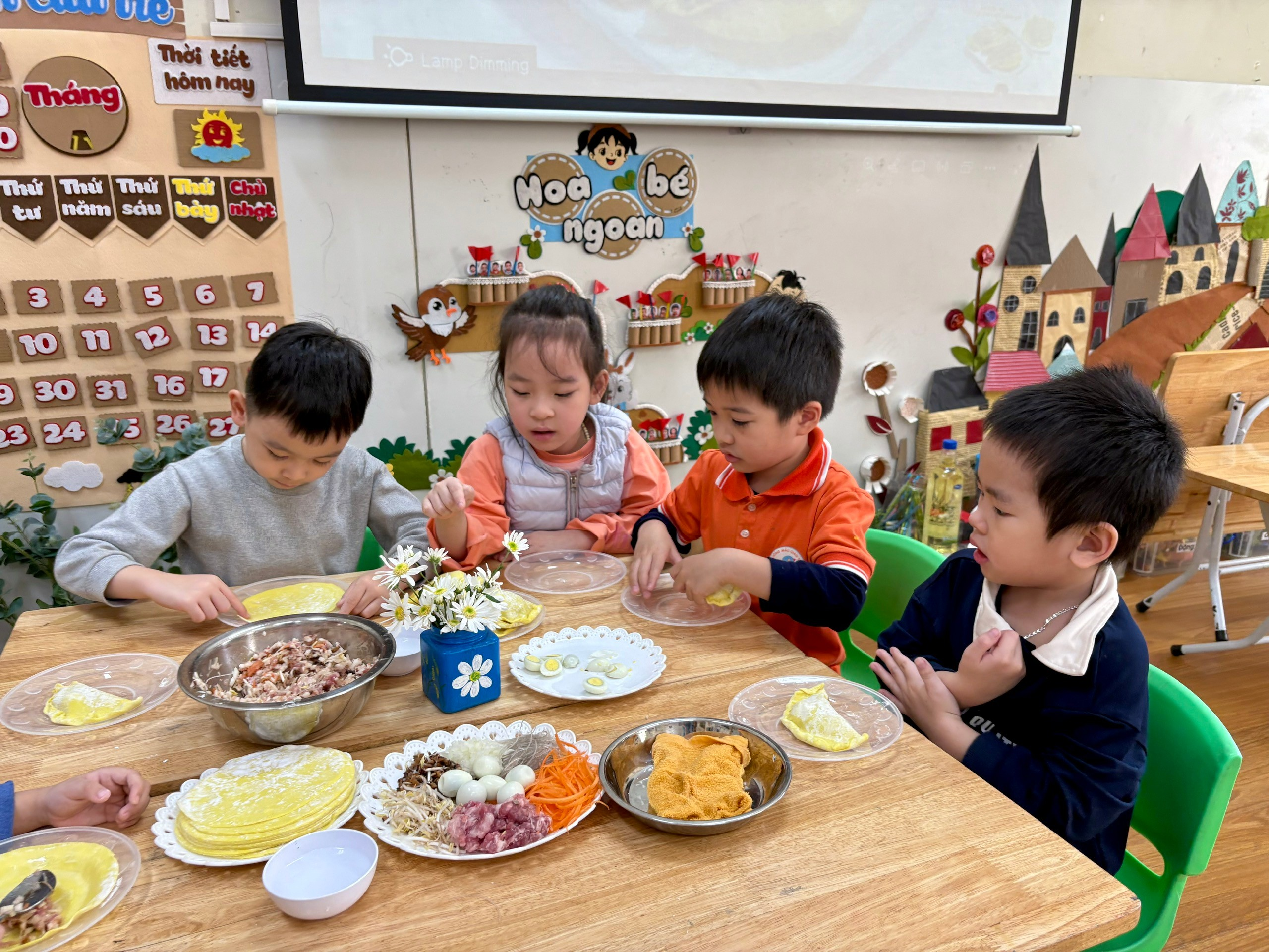 Điều đáng yêu nhất là khi những chiếc bánh đầu tiên hoàn thành – dù chưa thật đều, chưa thật đẹp– nhưng lại chứa đầy sự cố gắng, khéo léo và niềm vui của các con.