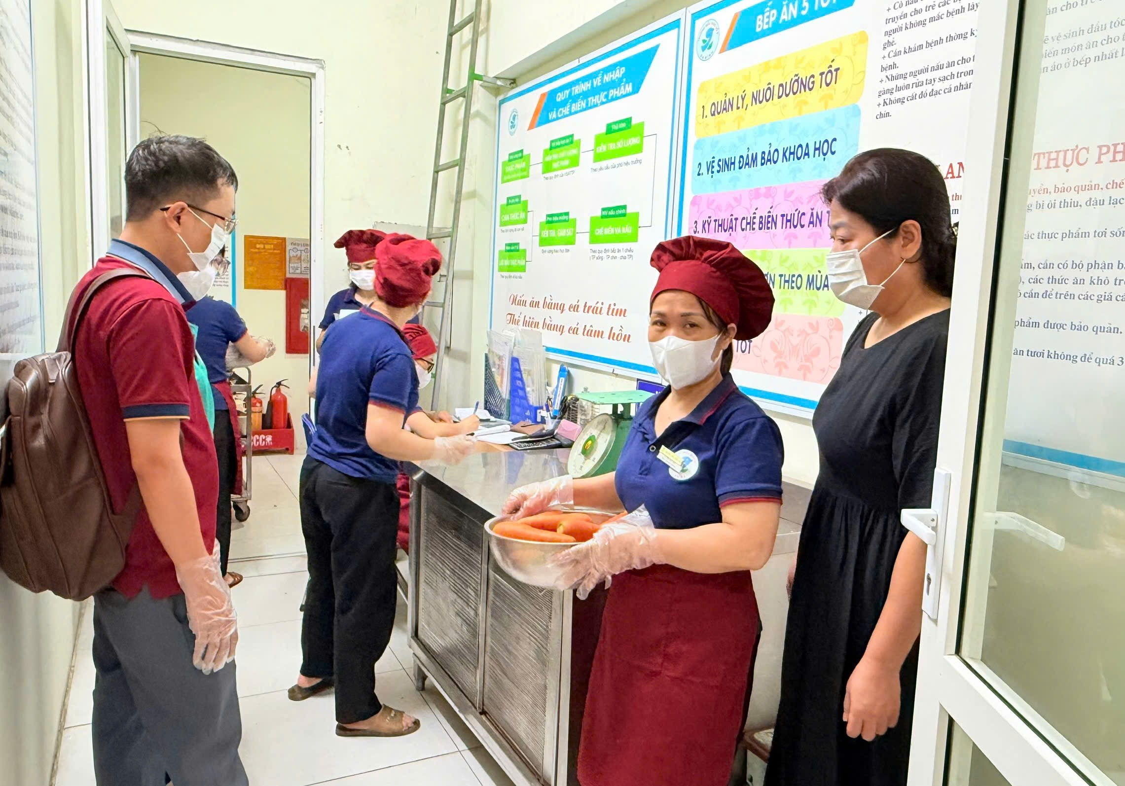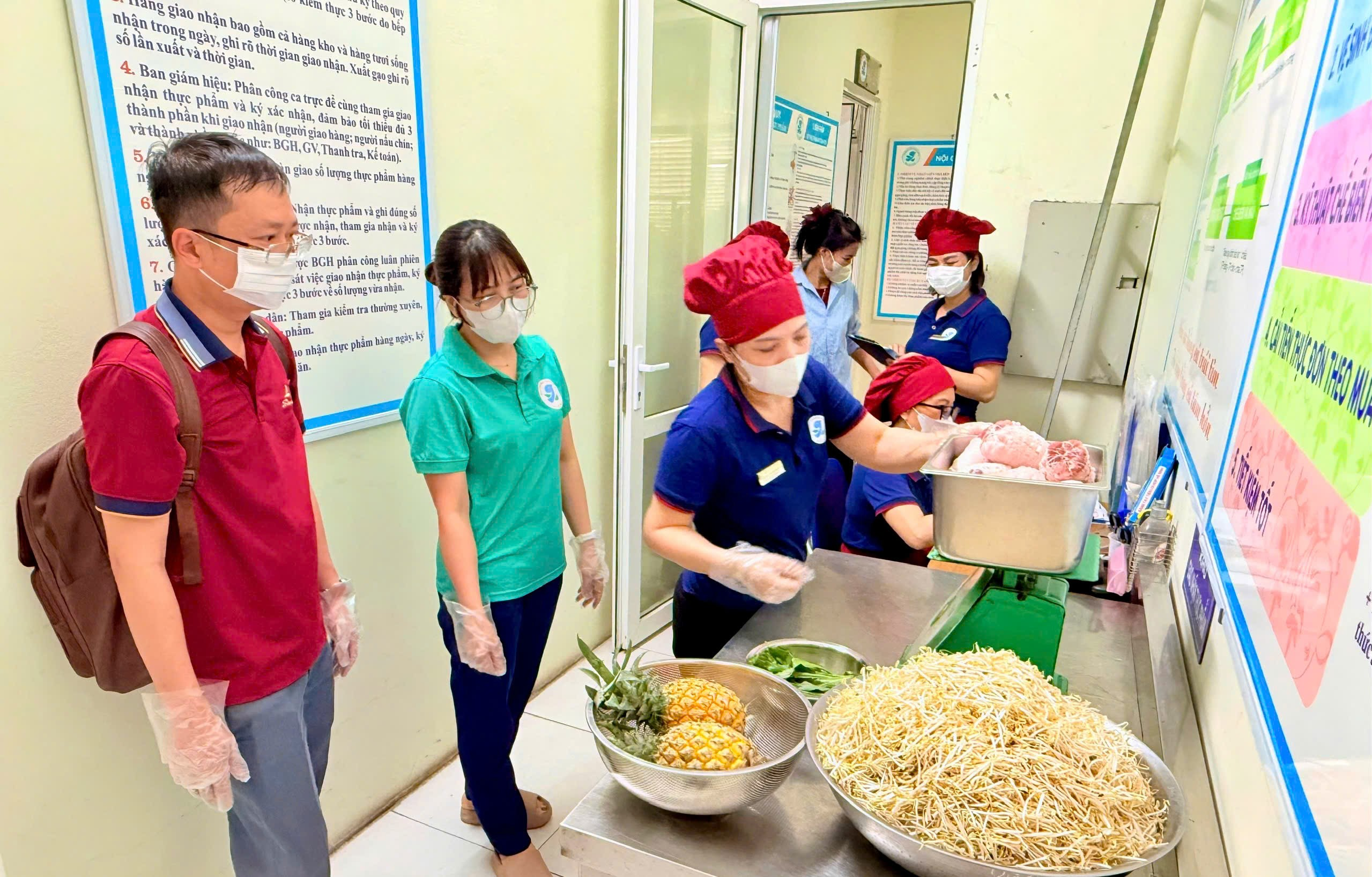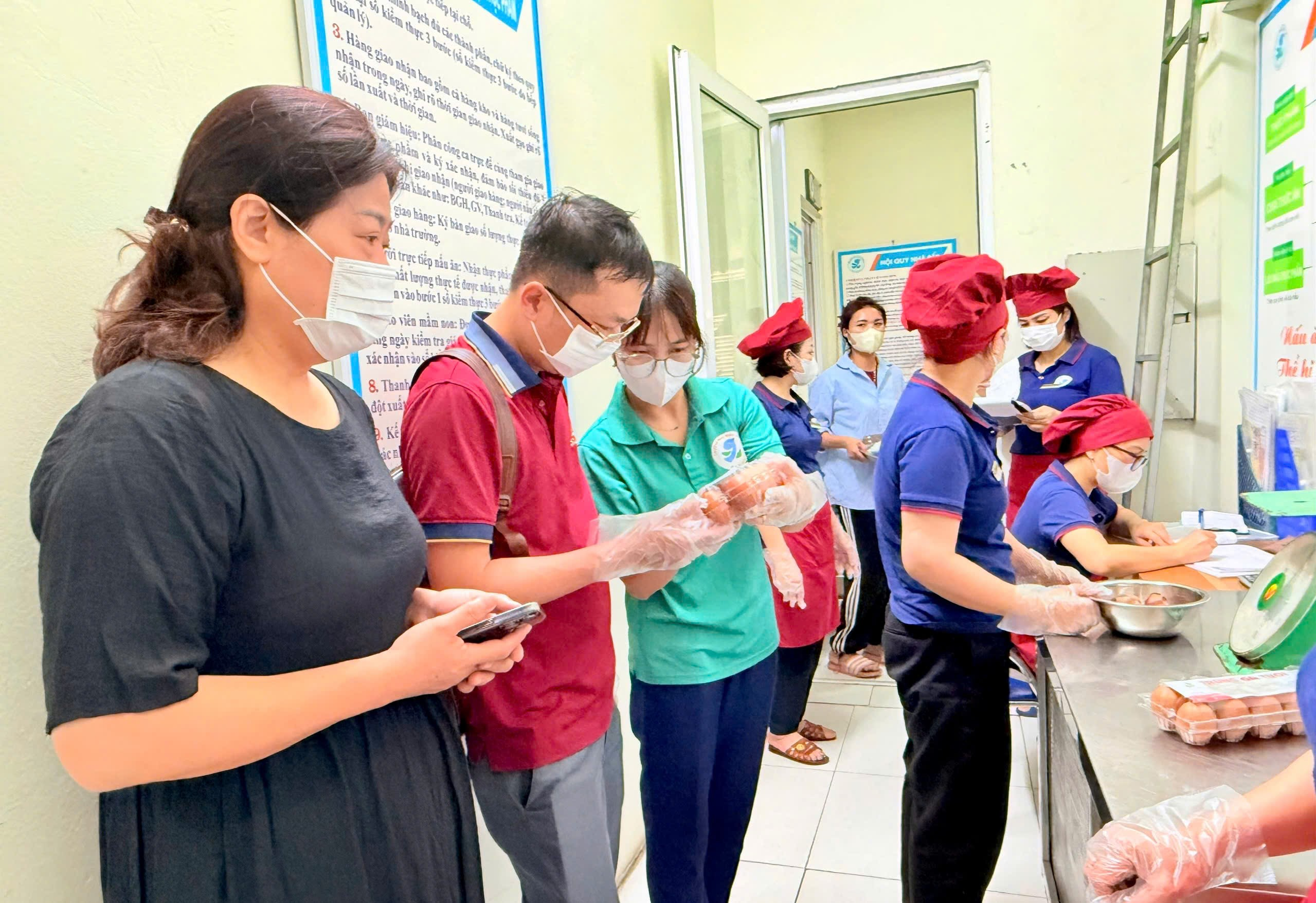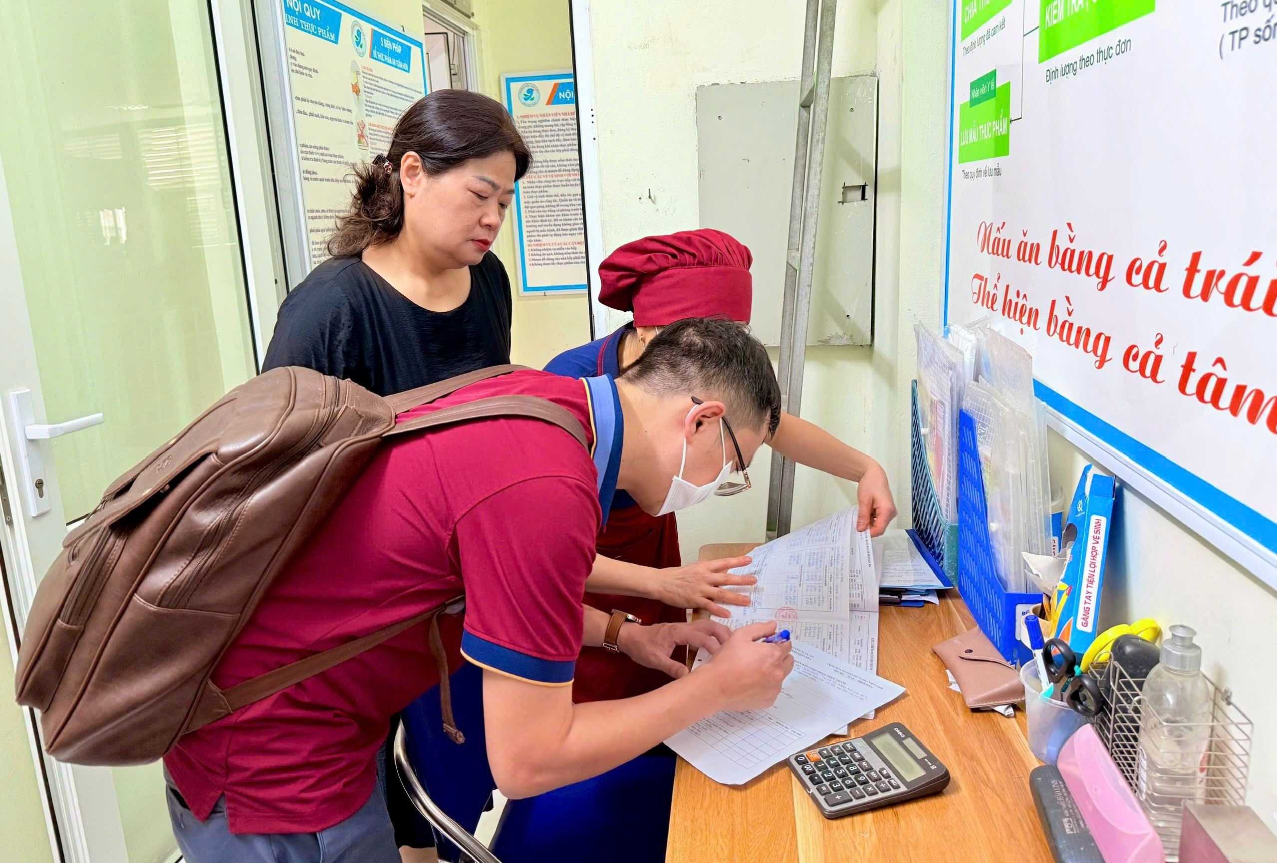 Phụ huynh và giáo viên kiểm tra, giám sát chất lượng thực phẩm đầu vào