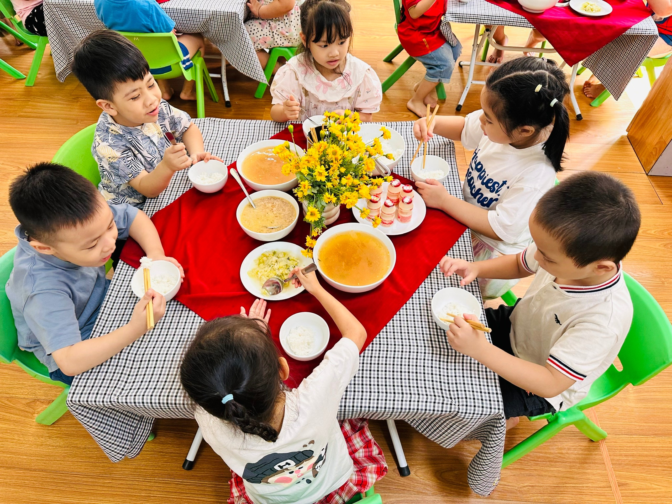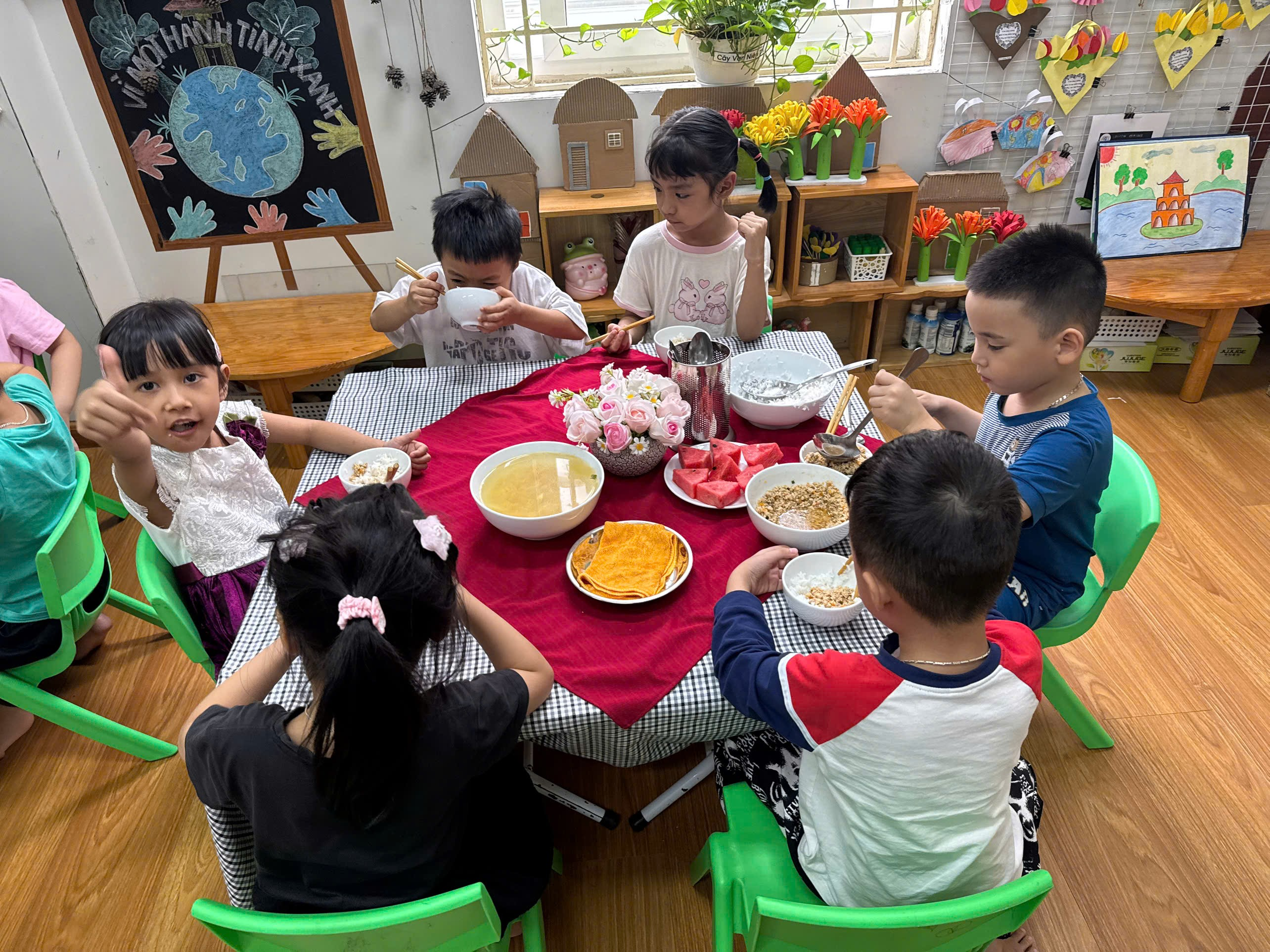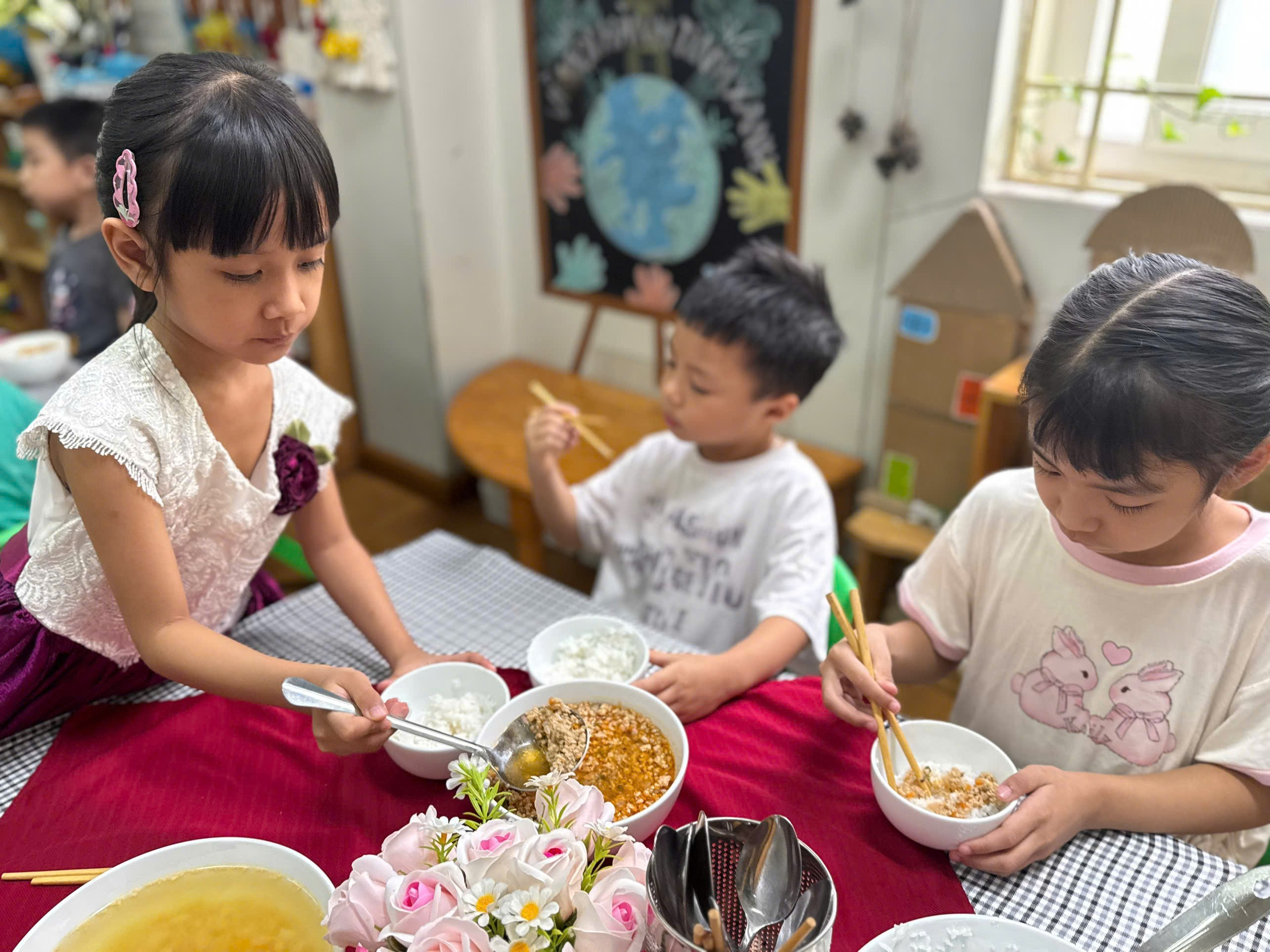Dưới đây là một số hình ảnh tổ chức bữa ăn gia đình tại các lớp A1, A2 và A3: