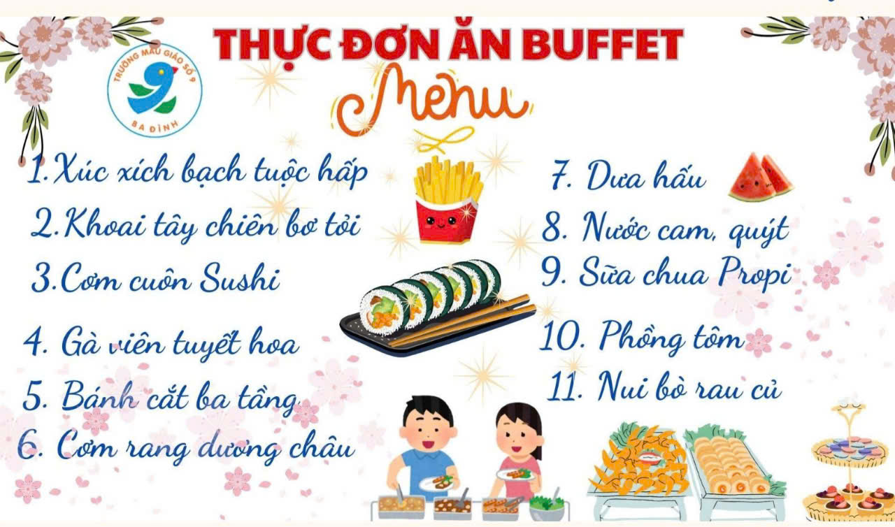 Đồng thời, các cô cũng luôn lưu ý bày đồ ăn thuận tiện cho trẻ khi lấy đồ ăn và giao lưu với các bạn. Bữa tiệc buffet chào mừng ngày Quốc tế phụ nữ 8/3 của các bé Trường Mẫu giáo số 9 đã diễn ra trong không khí vui vẻ, hào hứng.