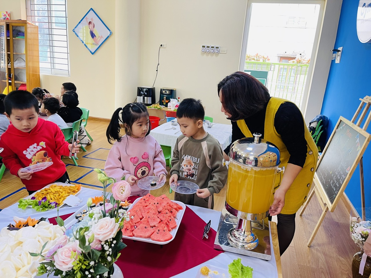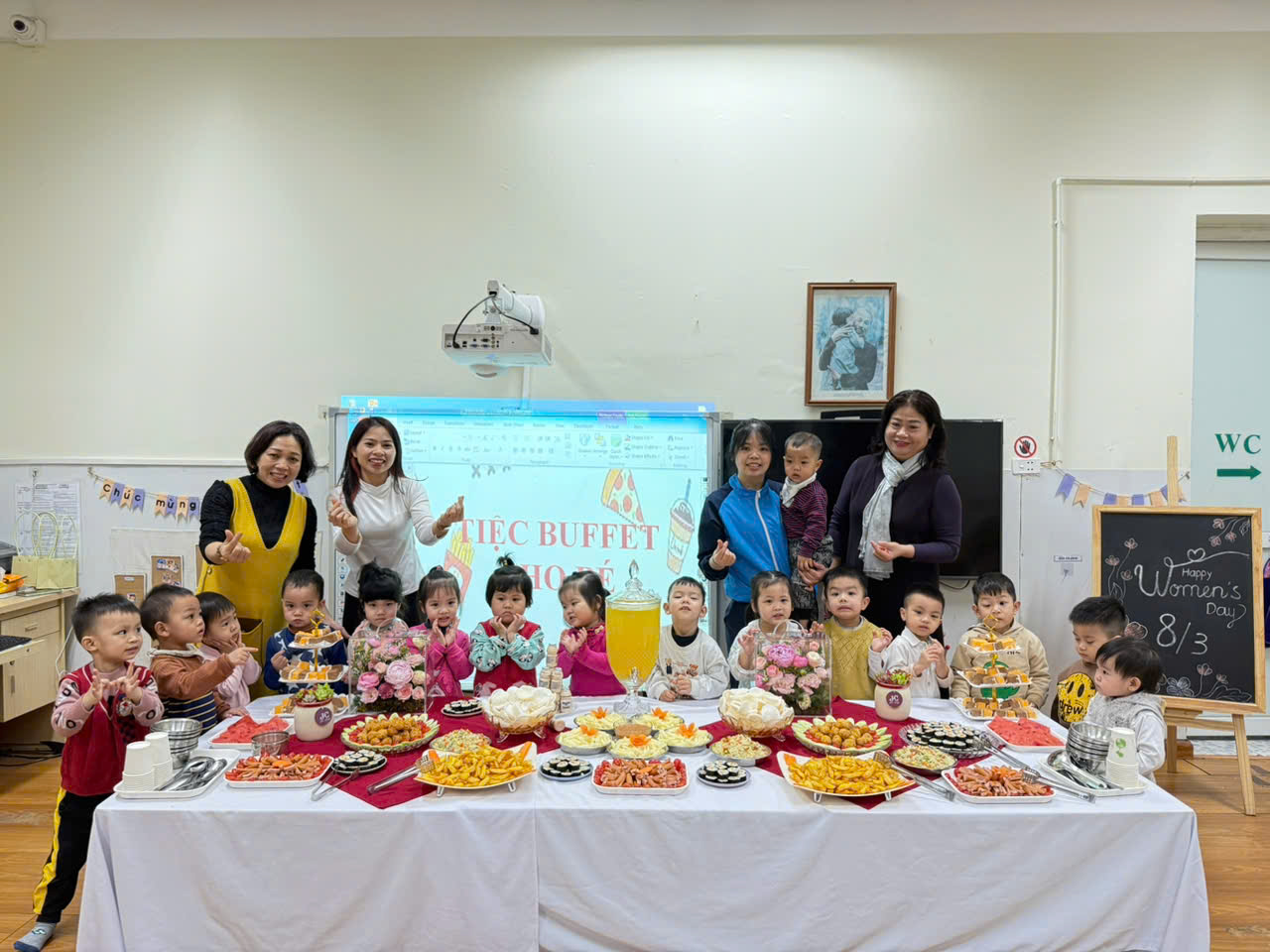 Bữa tiệc buffet chào mừng ngày Quốc tế Phụ nữ 8/3 của các bé đã được tổ chức một cách trọn vẹn và thành công. Bữa tiệc không chỉ đạt được mục đích là để các bé thưởng thức món ăn mà quan trọng hơn là các bé được giao lưu với các cô, các bạn trong trường được bồi dưỡng thêm nhiều kỹ năng sống hữu ích.