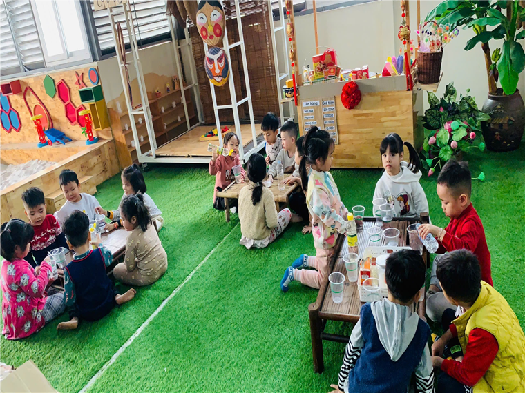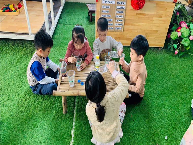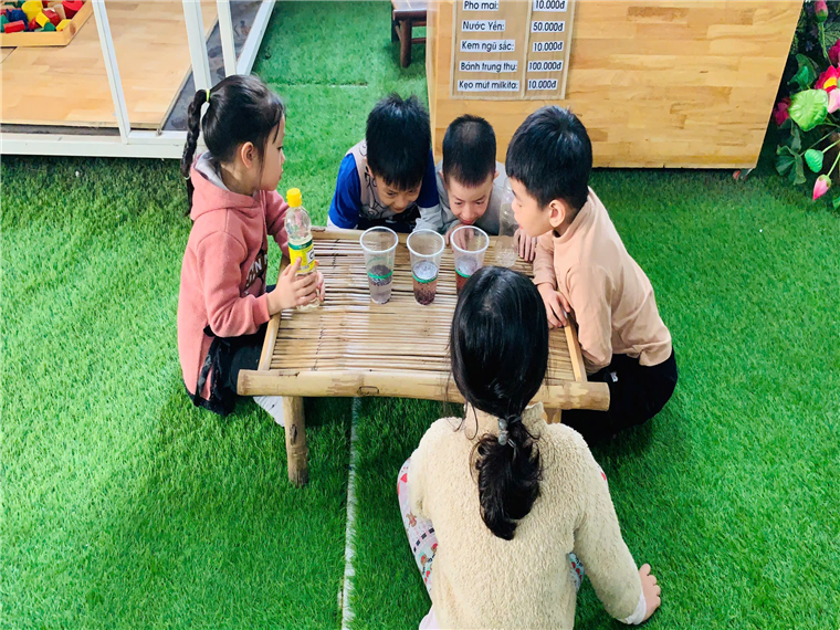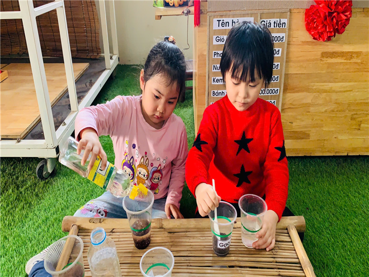 Với những nguyên liệu đơn giản và dễ tìm các cô giáo của lớp A1 đã cho các bé được biết đến các loại đồ dùng, nguyên liệu như: Baking Soda, nước, giấm, gạo… và cách đong, rót các loại chất lỏng. Đây không chỉ là cơ hội để các bé hiểu thêm về các khía cạnh khoa học mà còn là một trải nghiệm đầy màu sắc và ý nghĩa. Các hoạt động như tìm hiểu nguồn gốc của hạt gạo, ý nghĩa của hạt gạo, thí nghiệm với các chất để tạo ra hiện tượng “nhảy múa”, và khám phá các loại lương thực khác cũng giúp trẻ phát triển các kỹ năng quan sát, phân tích và làm việc nhóm.
