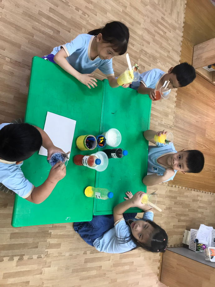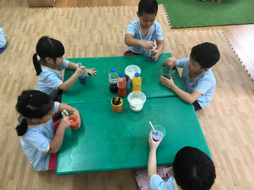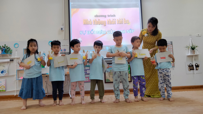 Các bạn nhỏ lớp MGL A1 tham gia vào Hoạt động khám phá “Hạt gạo nếp chuyển màu”
