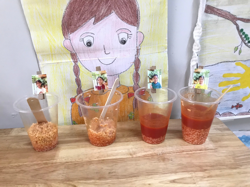 Sáng ngày 26/10/2022, các con lớp MGL A1 thực hiện hoạt động trải nghiệm làm hạt gạo nếp đổi màu từ nước ép rau, củ, quả tự nhiên.