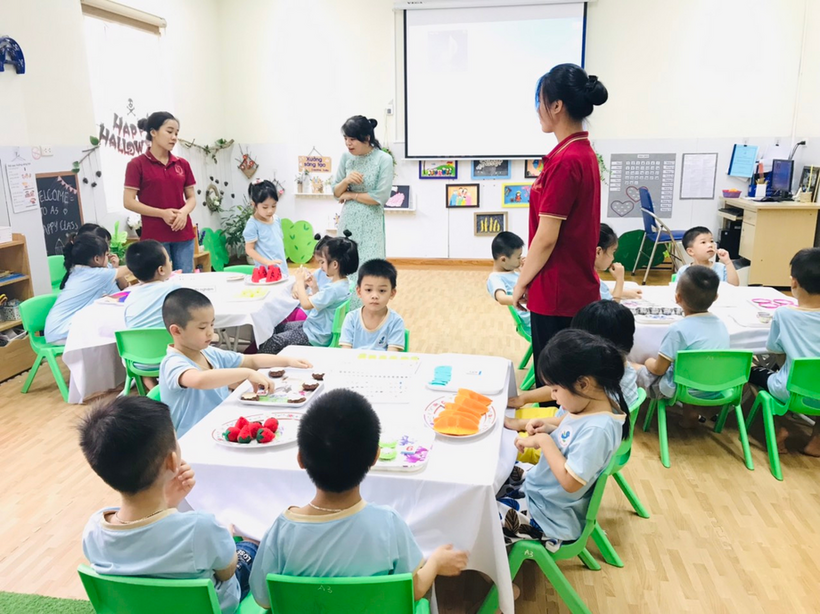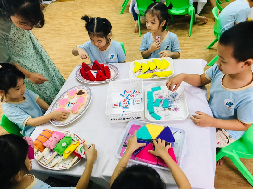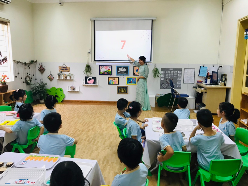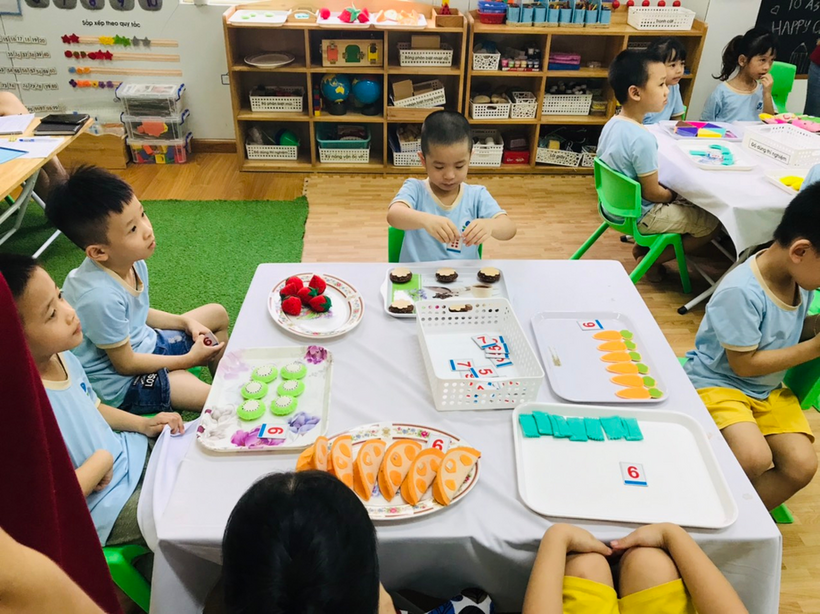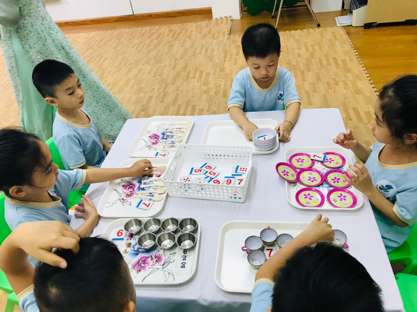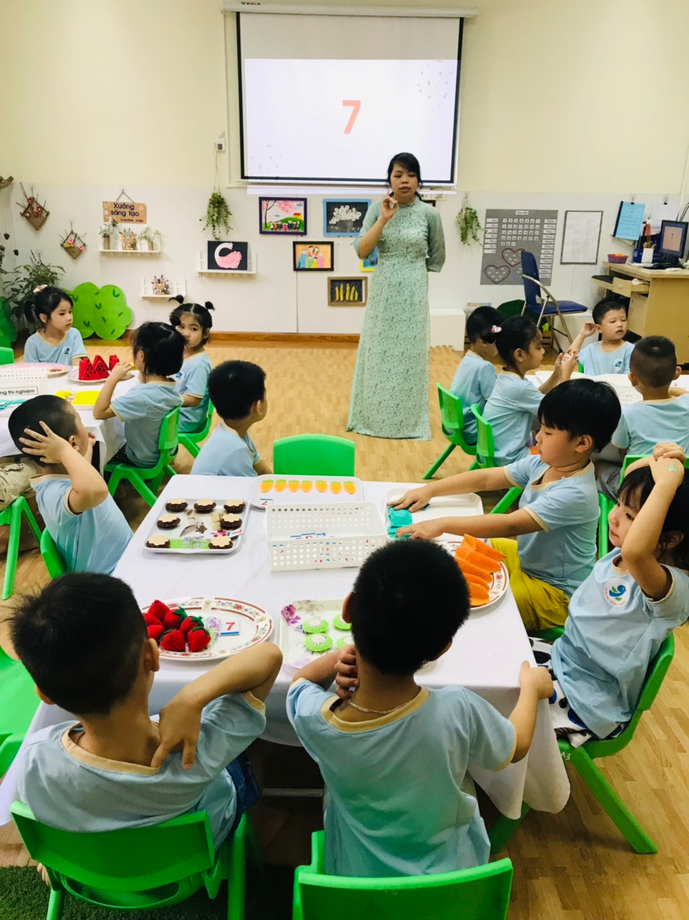 Các bạn nhỏ lớp MGL A3 tham gia hoạt động với nhóm đối tượng có số lượng 7