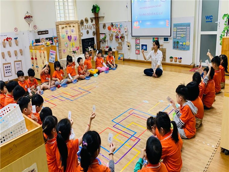 Các cô đã tạo dựng môi trường học chữ viết phong phú, cuốn hút trẻ và vận dụng môi trường đó để dạy trẻ trong hoạt động để gắn kết tình cảm gần gũi giữa cô và cháu, nắm bắt tâm lý, trình độ và cá tính của từng trẻ, kiên nhẫn và nhẹ nhàng giúp trẻ theo phương pháp “Chơi mà học, học bằng chơi”, tạo cho trẻ tâm thế, kỹ năng đọc viết.