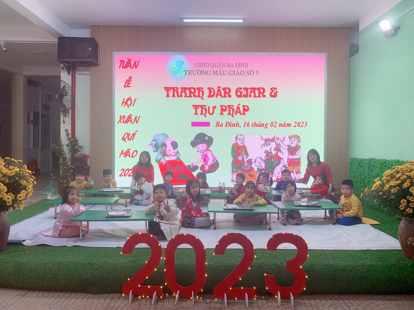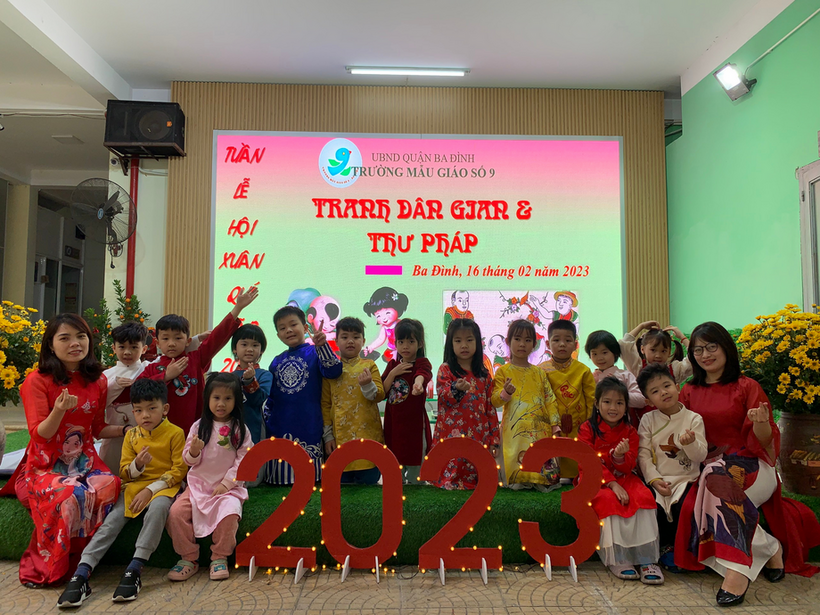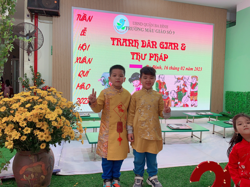 Như chúng ta đã biết, trẻ mầm non “học mà chơi, chơi mà học” vì vậy, trò chơi có vai trò vô cùng lớn đối với đối với sự phát triển của trẻ, đặc biệt là trò chơi dân gian. Trò chơi dân gian là một trong những loại trò chơi yêu thích của trẻ. Khi chơi, trẻ được thoả mãn nhu cầu chơi, nhu cầu khám phá thế giới xung quanh, nhu cầu được hoạt động trí tuệ. Sử dụng trò chơi dân gian nhằm giúp trẻ mầm non làm quen môi trường xung quanh chính là thực hiện việc thoả mãn nhu cầu chơi của trẻ đồng thời cung cấp, củng cố kiến thức, tạo cơ hội cho trẻ vận dụng kiến thức, kinh nghiệm trong các hoạt động, rèn luyện, phát triển các kĩ năng nhận thức, các kĩ năng xã hội và tạo cơ hội cho trẻ phát triển các ý tưởng sáng tạo và đặc biệt là khám phá thế giới rộng lớn xung quanh. Chính vì điều đó, trường Mẫu giáo Số 9 đã tổ chức cho các bé chơi những trò chơi dân gian vô cùng bổ ích trong tuần Lễ Hội Xuân như: Bắt vịt, đua cua, in tranh Đông Hồ, đồ chữ thư pháp,...