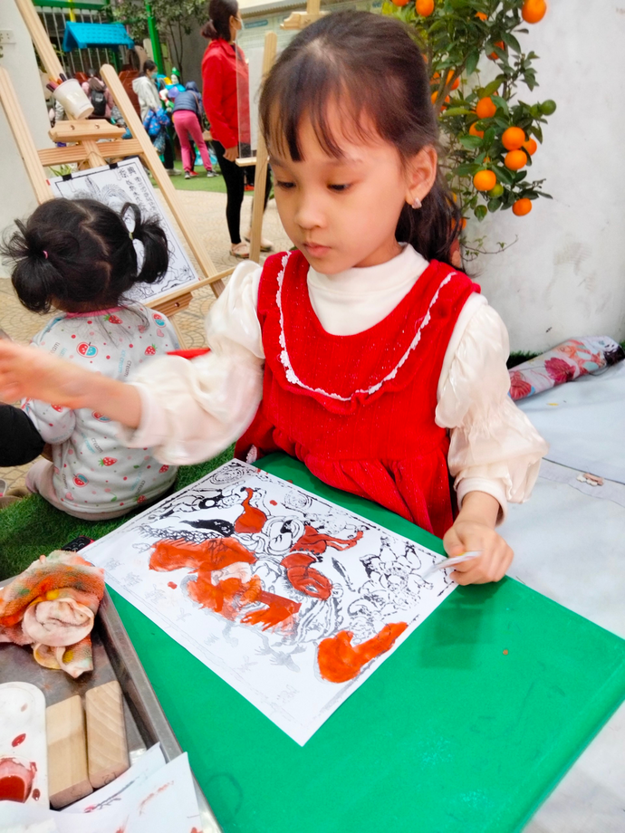 Thứ 5: Các bé tham gia các trò chơi dân gian như: Bắt vịt, đua cua, in, tô tranh Đông Hồ,…