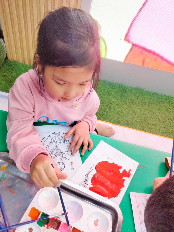 Hình ảnh trẻ tham gia trò chơi dân gian, đồ chữ, tô tranh,…