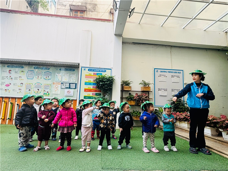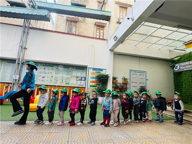 Dưới sân trường, các bé được tham gia vào nhiều trò chơi thú vị, giúp các em phát triển kỹ năng vận động, sự sáng tạo và tinh thần hợp tác. Đặc biệt hơn nữa để chào mừng kỷ niệm 80 năm ngày thành lập Quân đội nhân dân Việt Nam (22/12/1944 - 22/12/2024) các bé lớp D2 hôm nay còn được tập làm chú bộ đội. Các bé được hòa mình vào các hoạt động của chú bộ đội, tạo sự hứng thú, thu hút các bé tham gia.