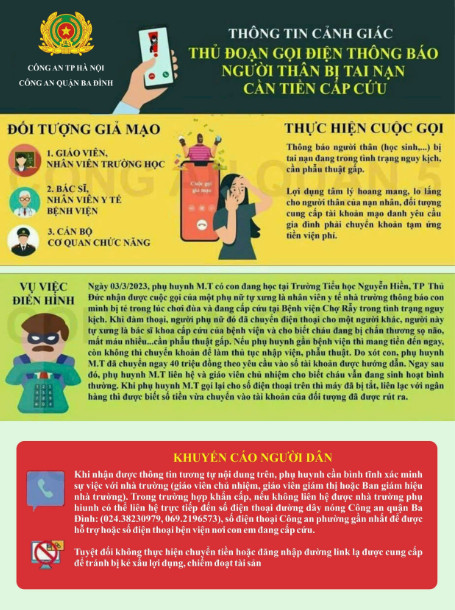 Trước tình hình có nhiều kẻ lợi dụng mạng viễn thông để lừa đảo phụ huynh học sinh, UBND thành phố Hà Nội, Sở GD&ĐT Hà Nội, UBND quận Ba Đình, Công an quận Ba Đình, Phòng GD&ĐT quận Ba Đình đã có những chỉ đạo kịp thời, đưa ra các biện pháp thông tin tuyên truyền đến từng phụ huynh học sinh trong các nhà trường.