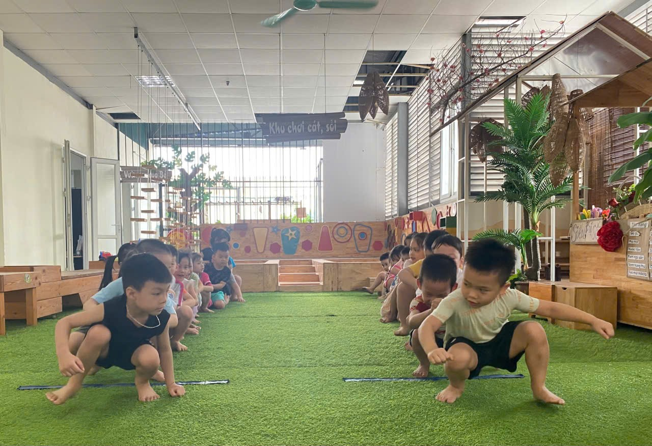 Ở tất cả các hoạt động trong ngày của trẻ tại trường mầm non yếu tố để các con phát triển khỏe mạnh, thể chất phải được đặt lên hàng đầu. Các trò chơi vận động như "Đua vịt", "Bật qua vòng", "Ném trúng đích"… không chỉ giúp các con rèn luyện sức bền, sự dẻo dai mà còn tăng cường sự khéo léo, phối hợp nhịp nhàng giữa tay và chân. Quan trọng hơn, những hoạt động này còn giúp giải phóng năng lượng, giảm căng thẳng, tạo nền tảng cho một cơ thể khỏe mạnh và tràn đầy sức sống.